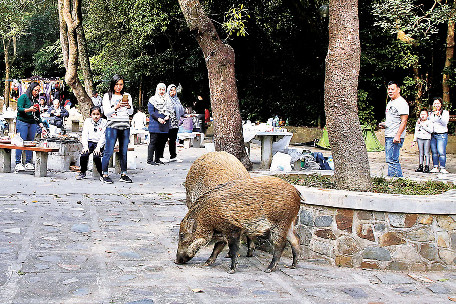 環保團體「綠惜地球」早前上載攝於大帽山郊野公園的短片,有成年野豬咬開了被棄置的黑色垃圾袋,袋中塑膠垃圾散落一地,至少七隻幼年野豬一哄而上,分吃垃圾。由於在疫情期間無法外遊,不少市民轉而前往郊野公園遊玩,帶來大量垃圾,除了破壞生態環境,食物殘渣更會吸引野生動物。牠們會受氣味吸引而嚼食包裝,增加窒息風險,甚至把包裝吞入肚中,最嚴重的情況可導致野生動物因而死亡。