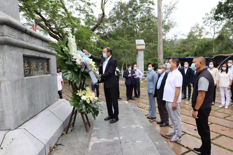 大公文匯全媒體報道:為慶祝中國共產黨成立100周年,緬懷革命先烈,進行愛國主義教育,香港廣東社團總會首長及會員日前赴沙頭角烏蛟騰抗日英烈紀念碑,舉行了國歌奏唱、默哀及花籃敬獻活動。出席活動廣總首長有第一執行主席鄧清河、執行主席黃俊康、常務副主席兼秘書長龍子明、常務副主席鄺美雲、會長朱李月華、常務副主席黃少康等。