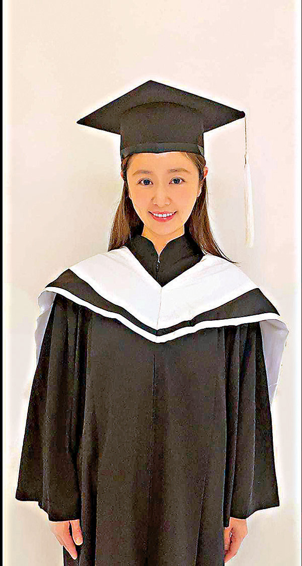 日月如梭,2年轉眼就過去了,林心如已經順利完成所有課程,昨日舉行線上畢業典禮。畢業典禮舉行的前一天,學校將學位服快遞給林心如,讓她穿戴好整套服裝拍攝畢業照。