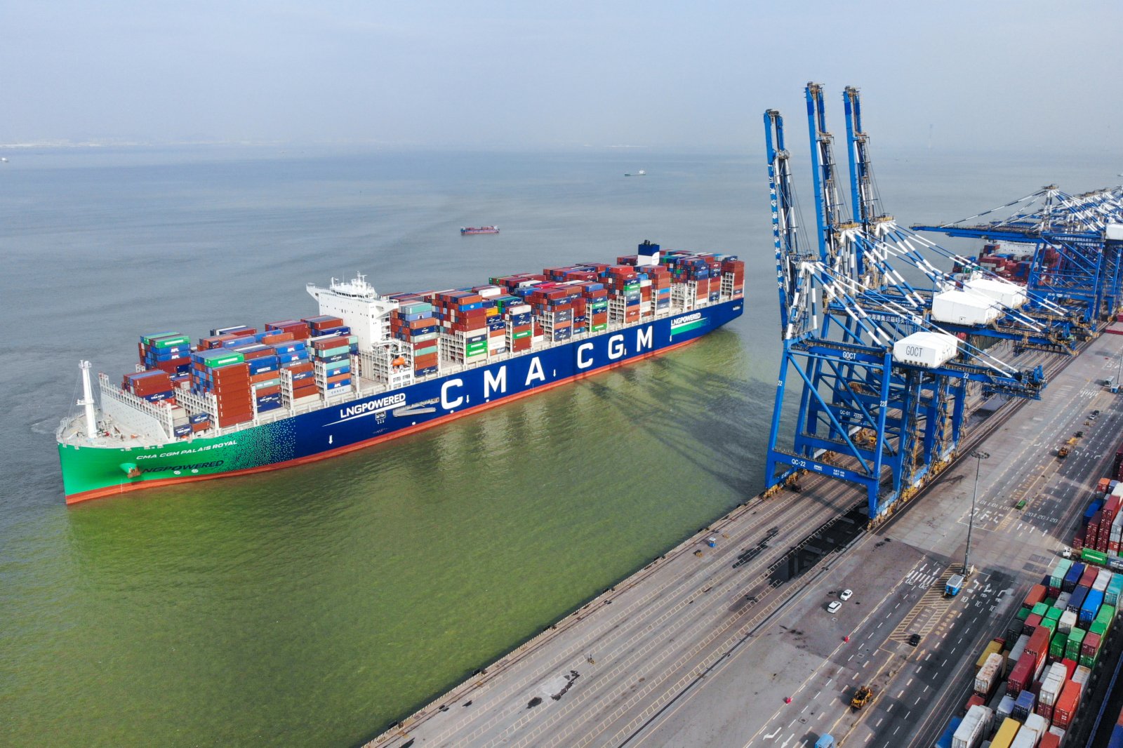 (香港文匯網記者 方俊明)受新一波新冠疫情影響,廣州港進一步管控港區疫情輸入風險。記者7日從廣州港獲悉,目前港區防疫與生產「並舉」,全球最大的液化天然氣(LNG)動力集裝箱船「達飛皇家宮殿」日前靠泊南沙二期,這也是廣州港南沙港區迎來的首艘LNG動力集裝箱船。