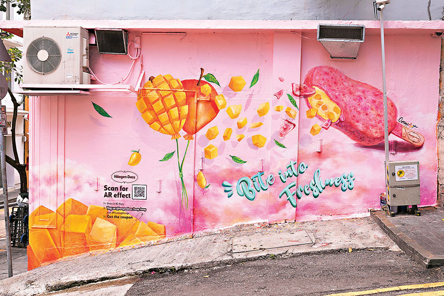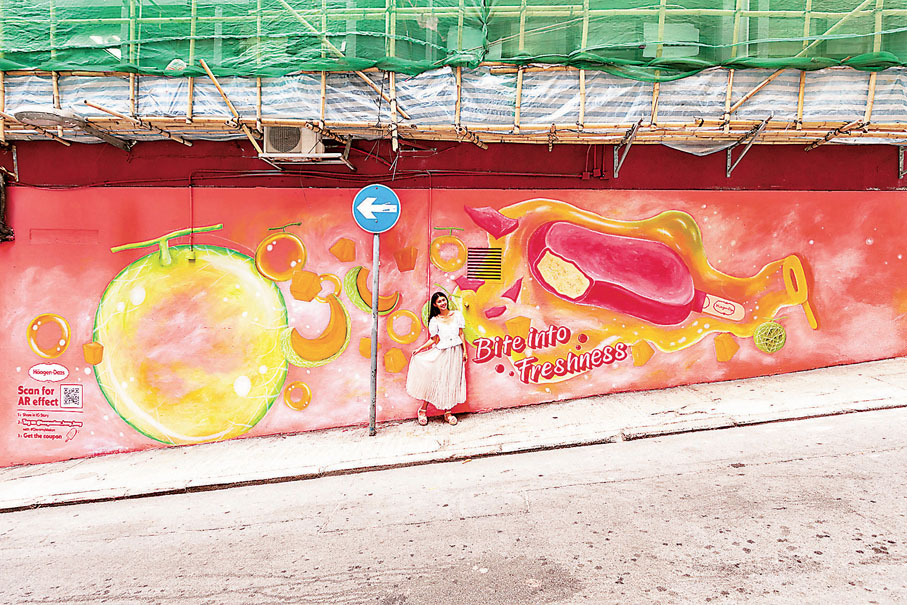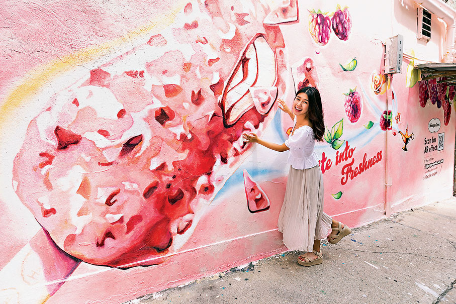 每幅牆還有Instagram AR濾鏡,只要用手機輕輕一掃QR Code就會呈現超現實果漾特效,拍照後根據牆上指示分享到Instagram story,並標註 @haagendazs_hong_kong可獲得限時優惠券,打卡後更可以一嚐全新果漾脆皮雪糕批,讓你的視覺及味覺都一同投入清新粉色盛夏,展期至6月17日,喜歡探索城市的你怎能錯過﹗ ●文、圖︰從零