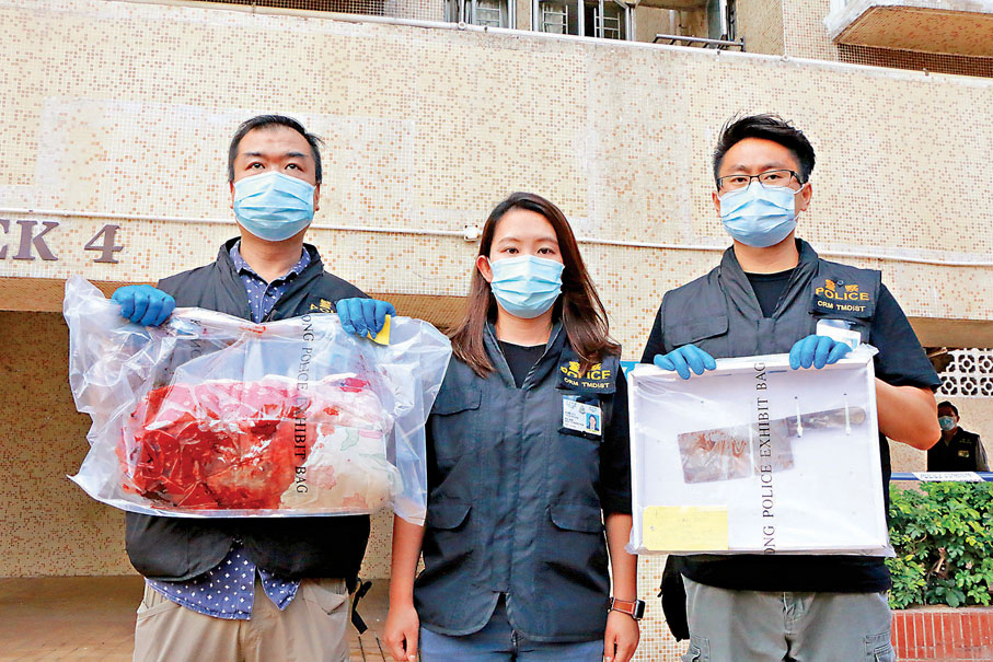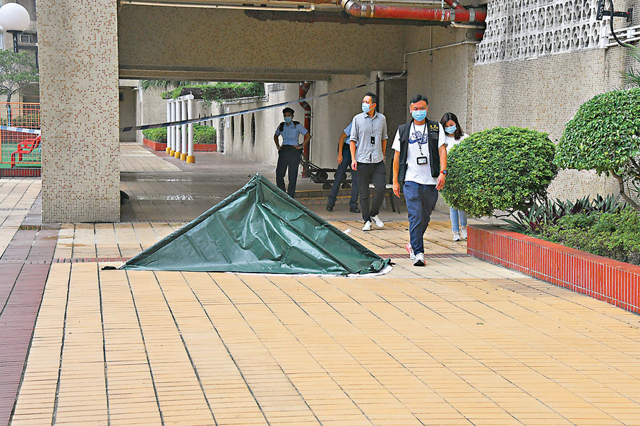 屯門市廣場一對結婚40載、外界公認的恩愛夫妻,丈夫昨凌晨突向睡夢中妻子狠下毒手,用菜刀狂砍向妻子的頸部及頭面,女事主當場斷喉斃命。有人在斬殺妻子後,疑畏罪拆下客廳的窗花跳樓自殺死亡,這是本港今年以來發生的第八宗倫常慘案,警方已列作謀殺及自殺案追查案件動機。●香港文匯報記者 蕭景源
