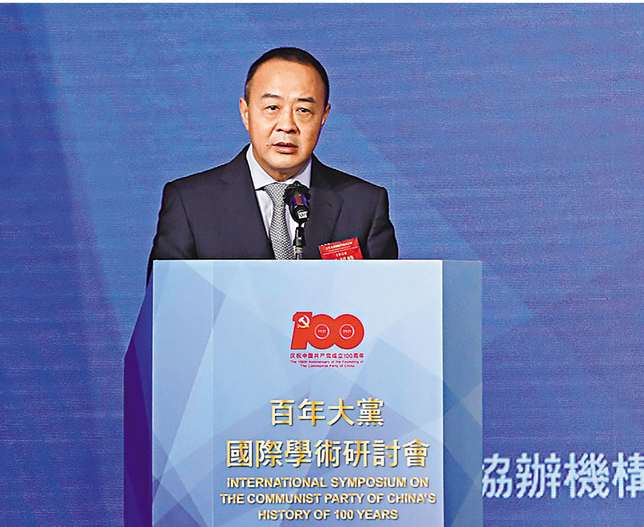 香港文匯報訊(記者 鄭治祖)紫荊文化集團董事長毛超峰昨日在「百年大黨國際學術研討會」上致歡迎辭表示,中國共產黨一百年前成立這一開天闢地的大事件,深刻改變了近代以來中華民族的發展方向和進程、深刻改變了中國人民和中華民族的前途和命運,深刻改變了世界發展的趨勢和格局。他強調,發起研討會的目的,旨在探討中國共產黨在一個擁有14億多人口的大國治國理政的成功經驗。
