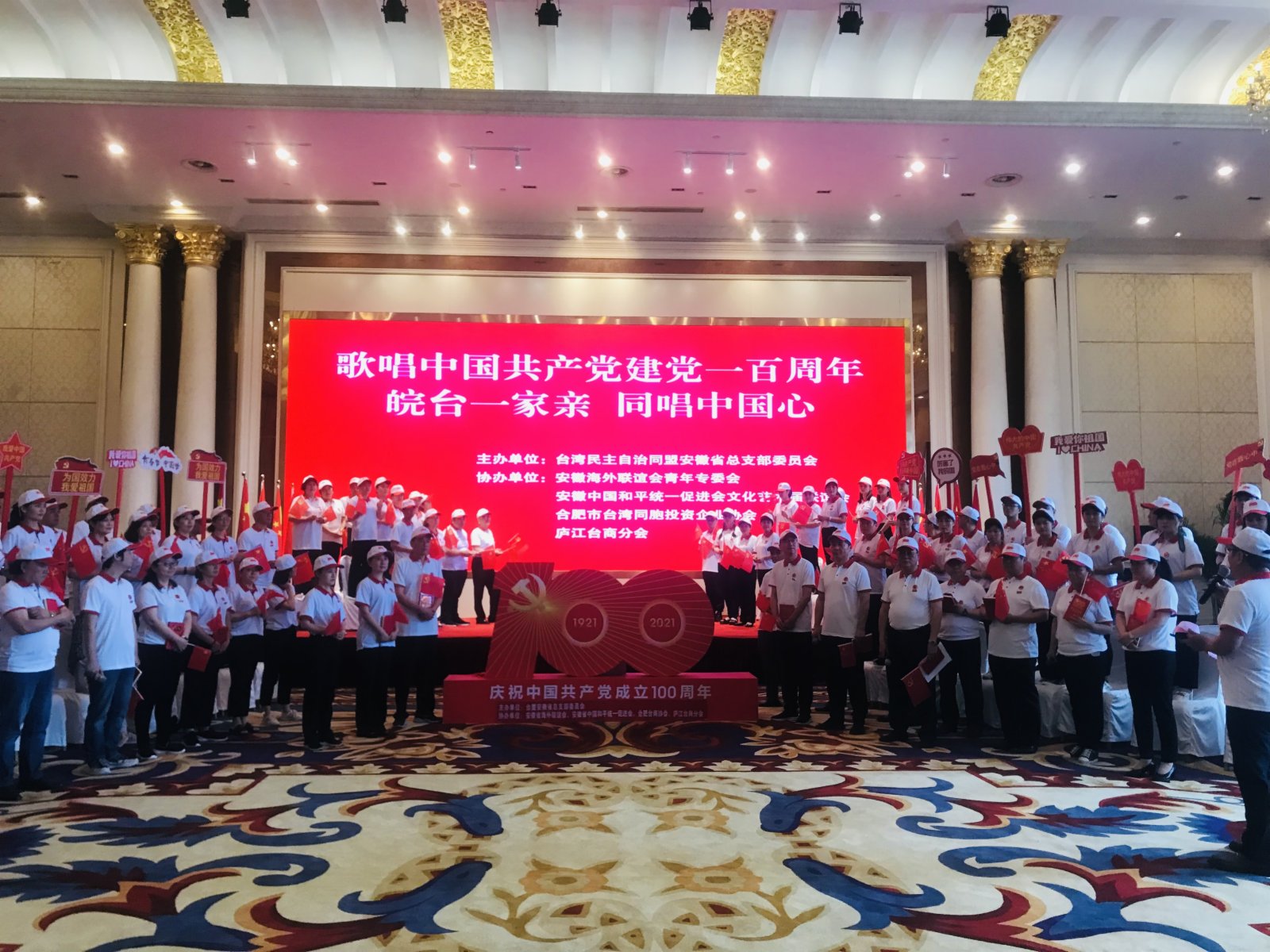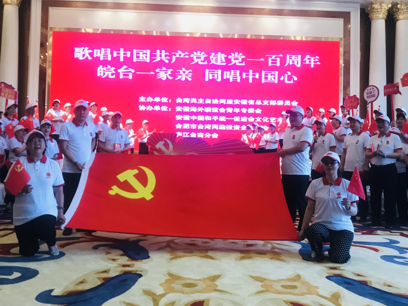 (香港文匯網記者趙臣 合肥報道)為慶祝中國共產黨成立100周年,抒發兩岸台胞家國情懷,6月18日下午,「皖台一家親 同唱中國心」活動在安徽合肥市舉行。活動通過合唱的方式,由台盟盟員、海聯會和統促會理事、台商、台乾、台生、台青、皖籍兩岸婚姻家庭等百餘人,用歌聲傳遞對偉大祖國的熱愛之情。