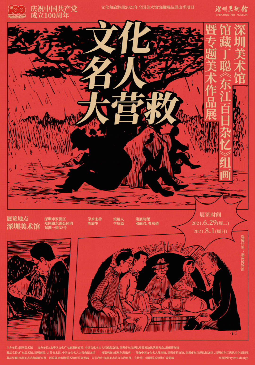 習近平總書記指示「要把紅色資源利用好,把紅色傳統發揚好,把紅色基因傳承好」,文化名人大營救相關的遺址、文獻、以及丁聰先生捐贈給深圳的這些作品,都是深圳這片土地上的重要和寶貴的紅色資源。因此,在中國共產黨建立100周年之際,我館舉辦以「文化名人大營救」為主題的美術研究展,從深圳美術館館藏丁聰先生的組畫開始講起,結合有關文化名人大營救主題的美術作品和文獻資料,向觀眾講述這一重要的歷史事件,擴大民眾對於這段歷史的關注,加深理解黨中央愛護知識分子、堅持統一戰線的政策,繼承和發揚黨的優良傳統,助力中國共產黨黨史的宣傳,倡導和推動黨史美術作品的創作與展覽。