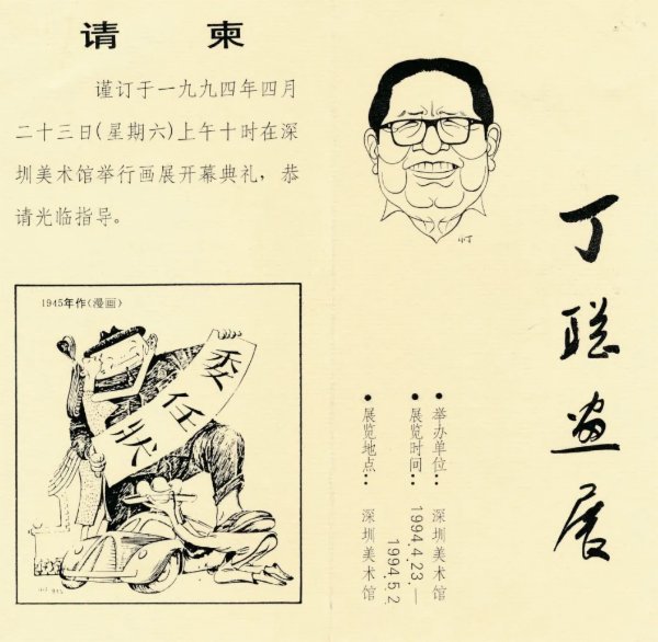 此篇章為展覽序篇,展陳內容主要包括丁聰先生的生平簡介及1994深圳美術館舉辦「丁聰畫展」時的開幕現場、展出作品、研討會、媒體採訪、捐贈收藏記錄,以及深圳美術館工作人員陪同丁聰先生及夫人前往深圳大鵬東江縱隊司令部舊址、世界之窗、錦繡中華等地參觀的照片等館藏檔案文獻。