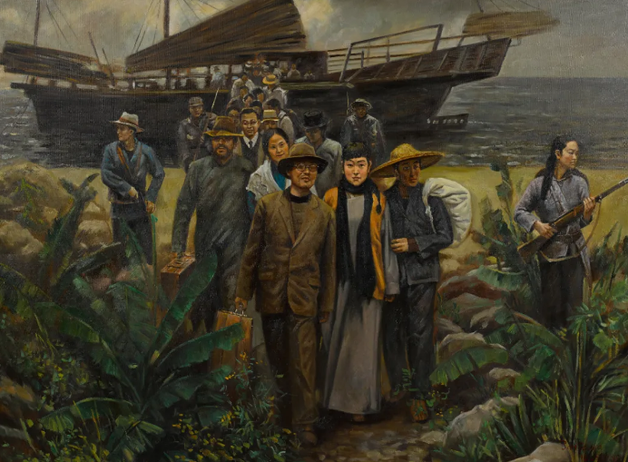 文化名人大營救是中國共產黨黨史上精彩的篇章,中國共產黨領導人一直以來對文化民主人士的關懷和重視,東江游擊隊員們捨生忘死的精神,以及被營救的民主文化人士在各自領域為民族救亡鬥爭和國家建設做出貢獻,都不斷激勵着後人。此篇章展示的就是現當代老、中、青三代畫家在先輩革命者的感召和激勵下,以各自擅長的方式創作的文化名人大營救主題美術作品,包含國畫、版畫、油畫、雕塑等不同美術類別。展品得到了廣東美術館、深圳畫院、大芬美術館、中國文化名人紀念館的館藏支持,展出蔡迪支、許欽松創作的黑白木刻版畫《曉風殘月》、張樹國雕塑作品《大營救》、王鐵牛油畫作品《東江縱隊》、張明軍國畫《大營救》組畫、王時的白描國畫《文化名人大營救群像》、許浩宇的黑白木刻《營救文化名人》組畫等,通過豐富的美術作品講述「文化名人大營救」。