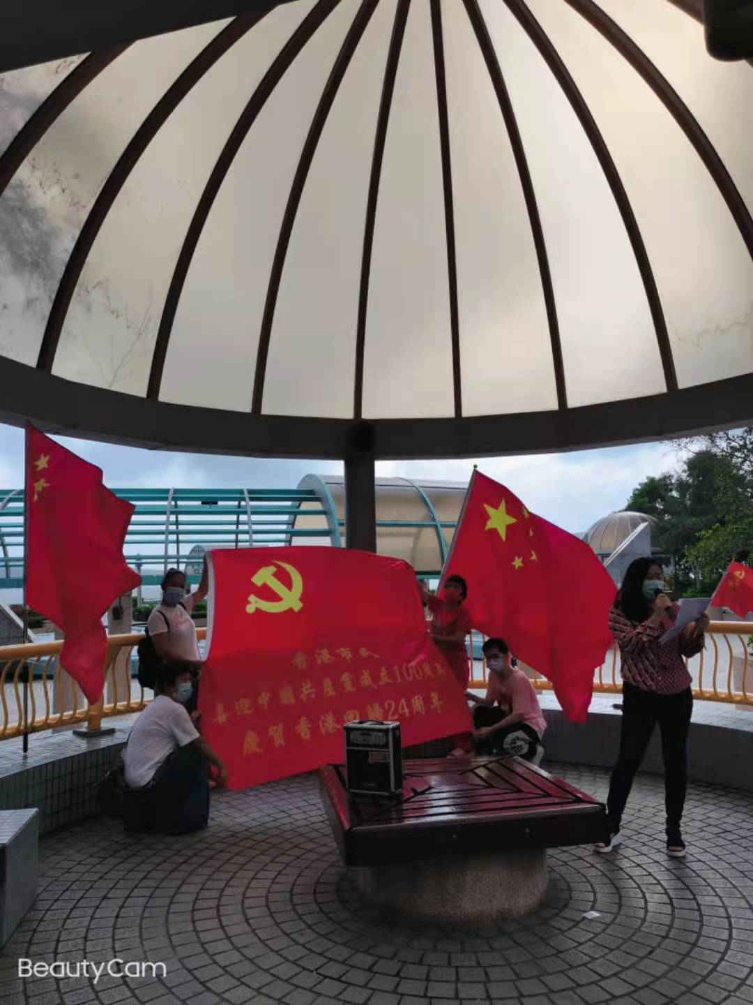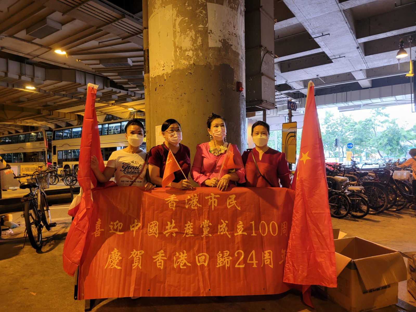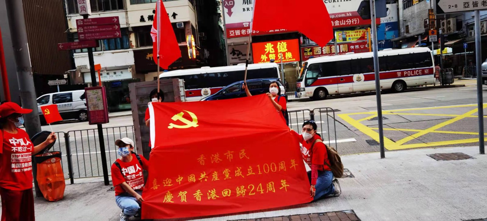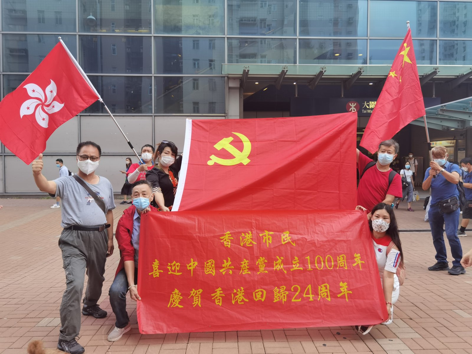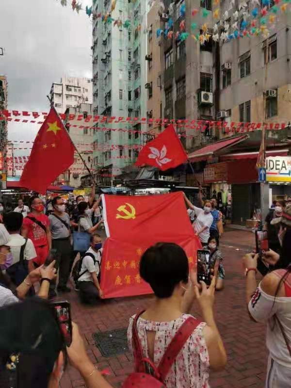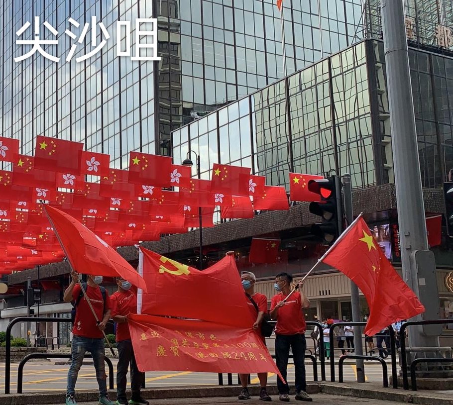 今日是中國共產黨成立100周年,也是香港回歸祖國24周年,眾多香港市民近兩日在全港十八區主要街道路口,揮舞國旗和香港特別行政區區旗,高唱國歌,表達慶祝。
