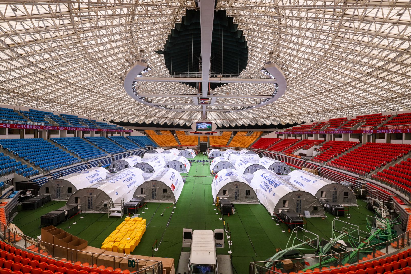 隨着「獵鷹號」氣膜實驗室休艙,位於廣州體育館內的六組氣膜艙全部關燈,在奮戰了整整一個月後,圓滿完成其以精準檢測助力抗擊疫情的使命。
