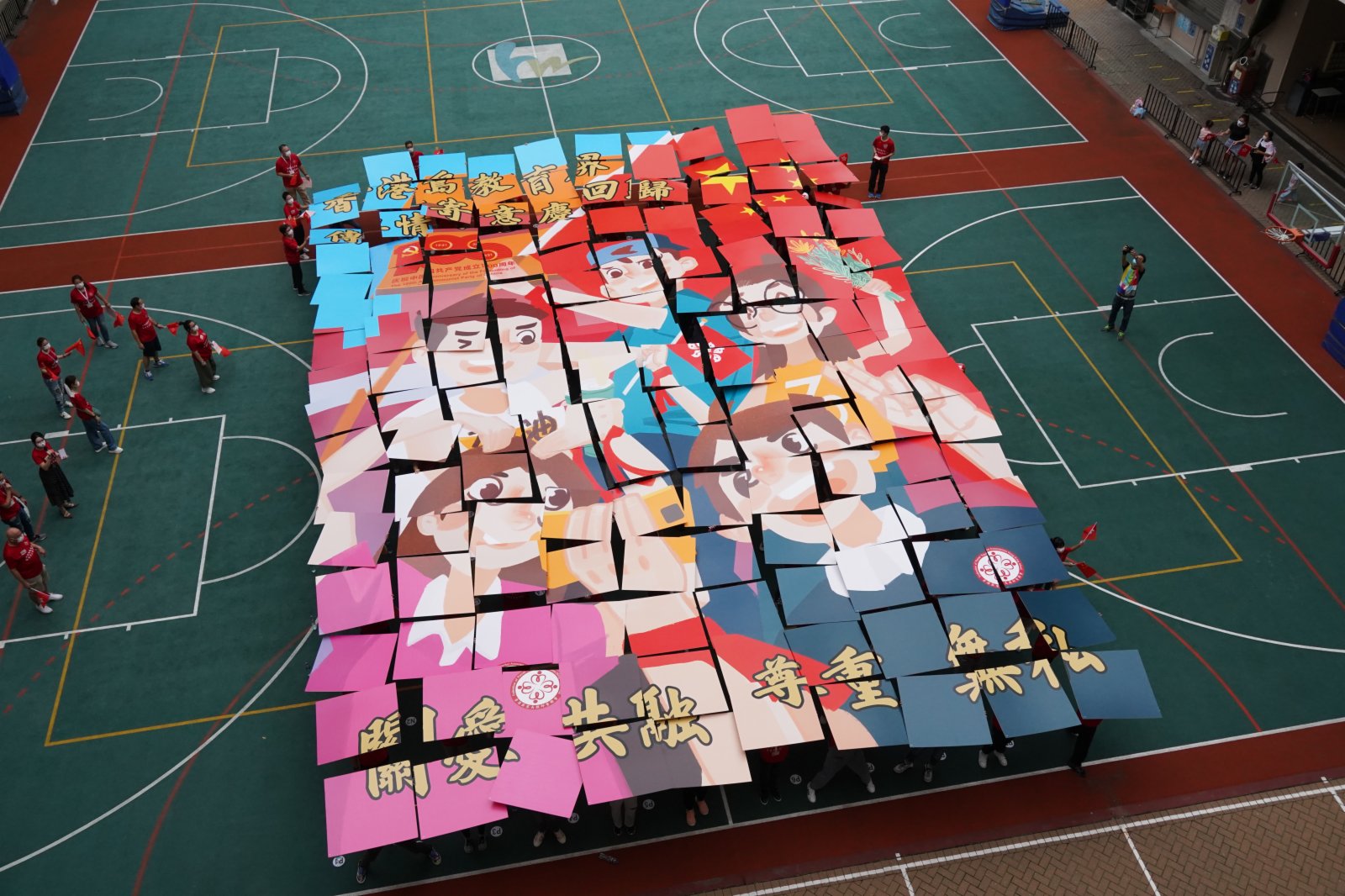 典禮結束後,全體嘉賓移步樓下操場進行「拼畫」活動,200多名家長及學生攜手透過藝術創作,拼砌一幅巨型拼畫,并共同合唱《歌唱祖國》《明天會更好》等歌曲,旨傳達關愛、共融、尊重、無私等訊息。