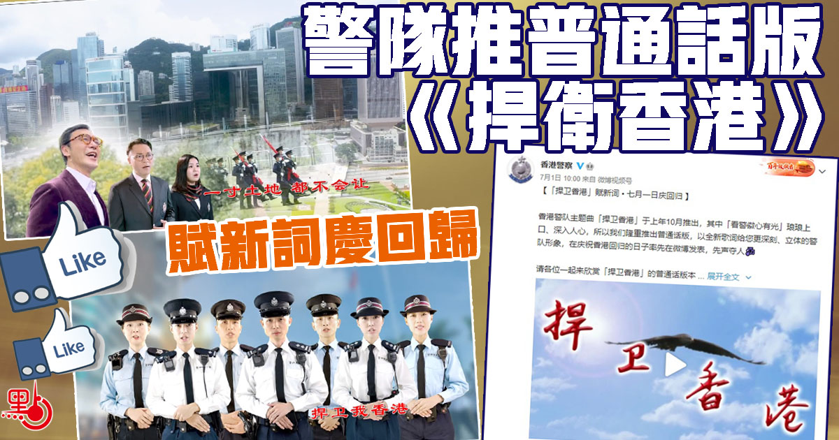 大公文匯全媒體報道:警方繼去年10月推出主題曲《捍衛香港》,昨日隆重推出普通話版,以全新歌詞,更深刻、立體的警隊形象,在慶祝香港回歸的日子裏先在警隊微博首播,先聲奪人。
