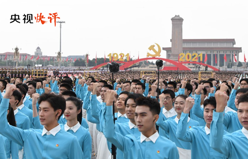 7月1日上午8時,慶祝中國共產黨成立100周年大會在北京天安門廣場隆重舉行。中共中央總書記、國家主席、中央軍委主席習近平發表重要講話,向全黨全社會發出了向着第二個百年奮鬥目標前進的總動員令。央視新聞7月2日發表題為《向着實現第二個百年奮鬥目標前進》的評論文章指出,在第一個百年中,中國共產黨向人民、向歷史交出了一份優異的答卷。如今,中國共產黨團結帶領中國人民又踏上了建設社會主義現代化強國、實現第二個百年奮鬥目標新的趕考之路。我們要堅持以習近平新時代中國特色社會主義思想為指引,繼續朝着實現中華民族偉大復興的宏偉目標奮勇前進。