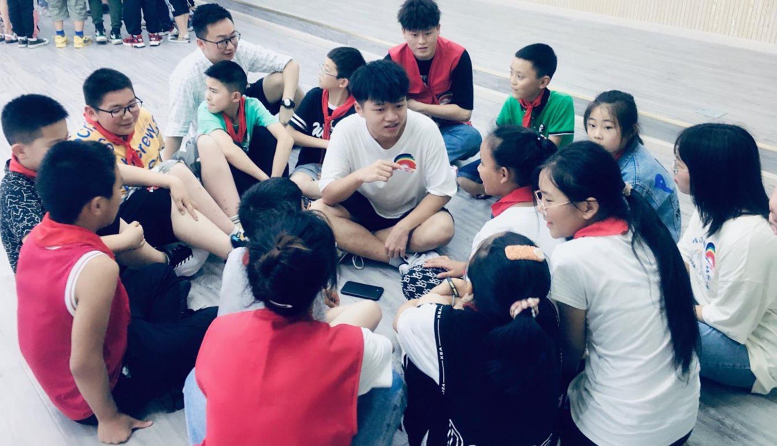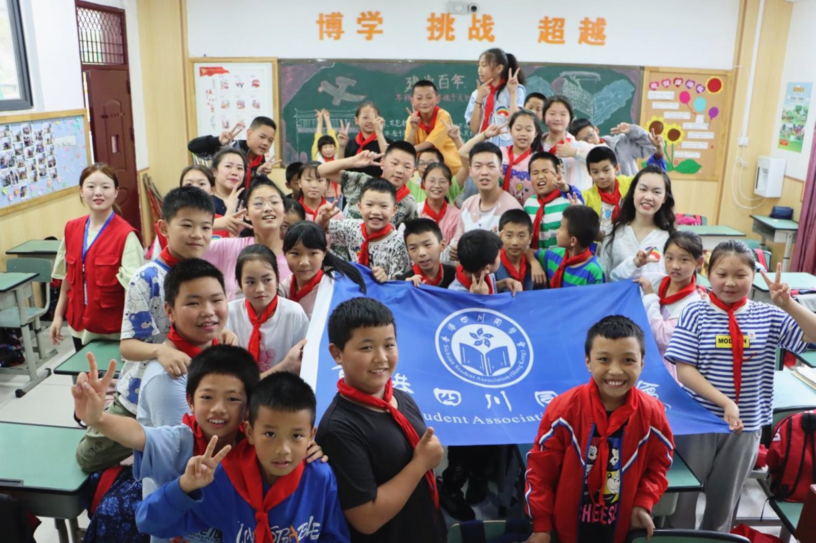 在閱讀陪伴環節,志願者們組織同學們圍坐一圈,四川香港高校學生聯合會理事長、成都中醫藥大學學生金俊羲向孩子們分享了香港回歸前後的故事。「香港比汶川的面積小,但是人口比汶川多得多,因此香港的建築特別密、特別高。」不知不覺中,拉近了汶川與香港之間的距離。最後,志願者還與當地師生一起,共同唱響愛國歌曲《唱支山歌給黨聽》。