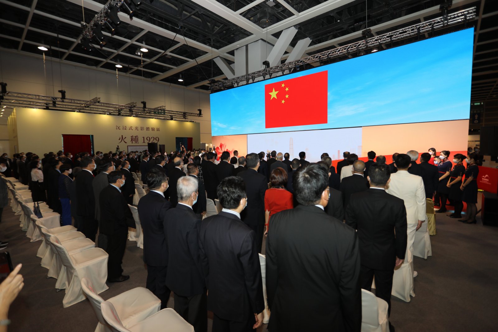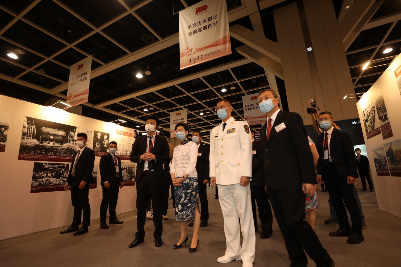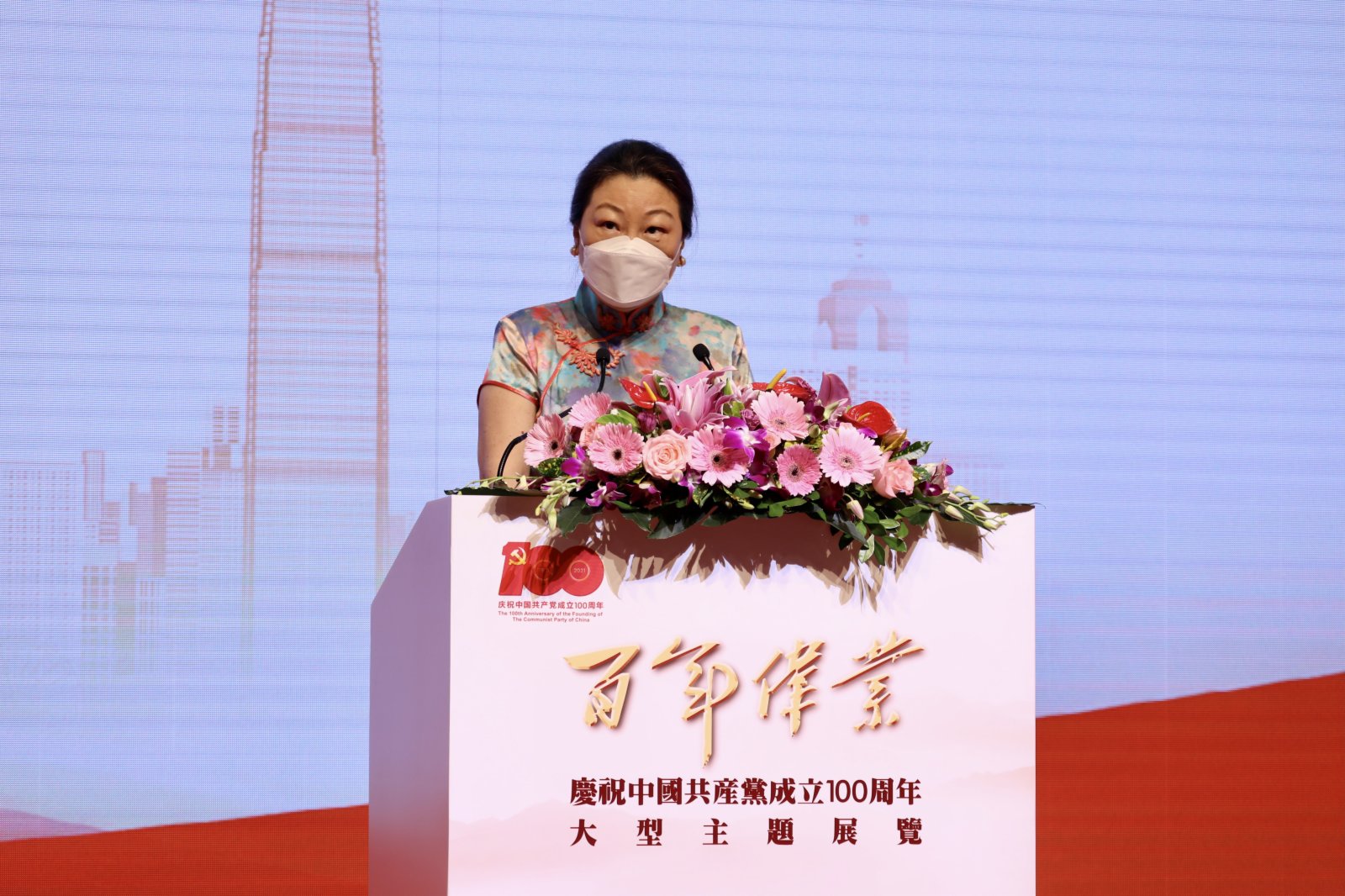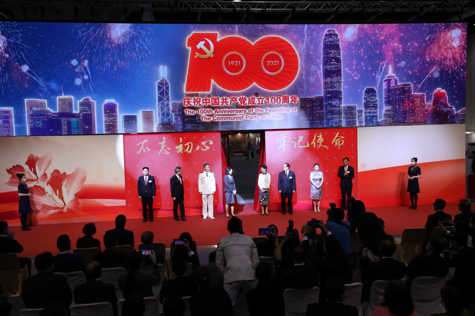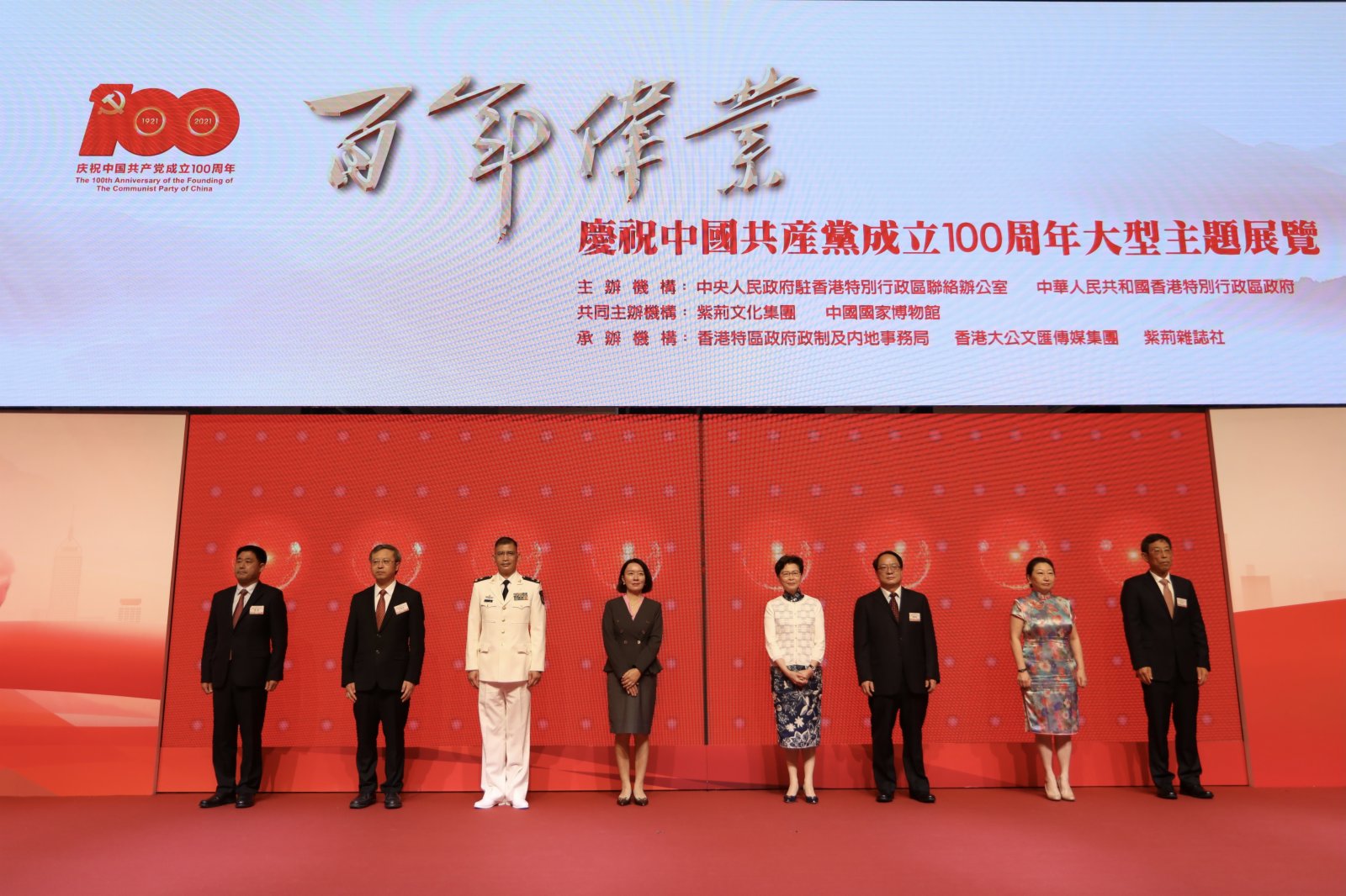 為慶祝中國共產黨成立100周年,由中聯辦、特區政府主辦,紫荊文化集團和國家博物館聯合主辦的「百年偉業──慶祝中國共產黨成立100周年大型主題展覽」今日(3日)起至7月9日舉行。行政長官林鄭月娥、中聯辦副主任盧新寧等出席開幕禮。律政司司長鄭若驊、紫荊文化集團總經理文宏武在開幕式上致辭。