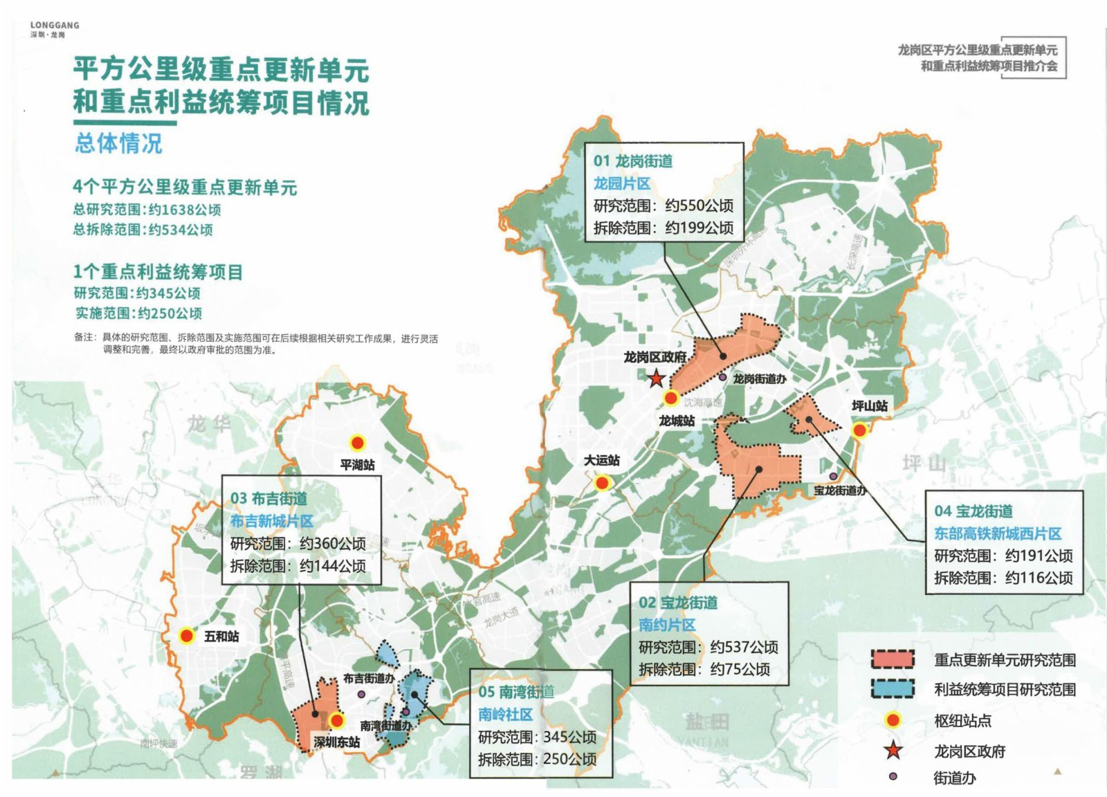 今年3月,龍崗區召開平方公里級重點城市更新單元和重點利益統籌項目推介會,推出4個平方公里級重點更新單元和1個重點利益統籌項目。華僑城集團黨委常委、副總經理倪徵代表集團參加了此次推介會,並表示,華僑城將依託龍崗區「一芯兩核多支點」的發展戰略,積極履行央企責任擔當,堅決推進龍崗各重點項目的建設,推動龍崗打造高標準高品質城區。
