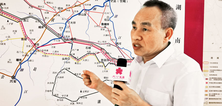 桂林紅軍長征湘江戰役文化保護傳承中心副主任黃利明說,紅軍長征過廣西總共走了296公里,在湘江戰役裏面損失了3萬人左右,平均算下來的話,中央紅軍在湘江戰役平均每前進10多米,就倒下犧牲一名紅軍戰士。