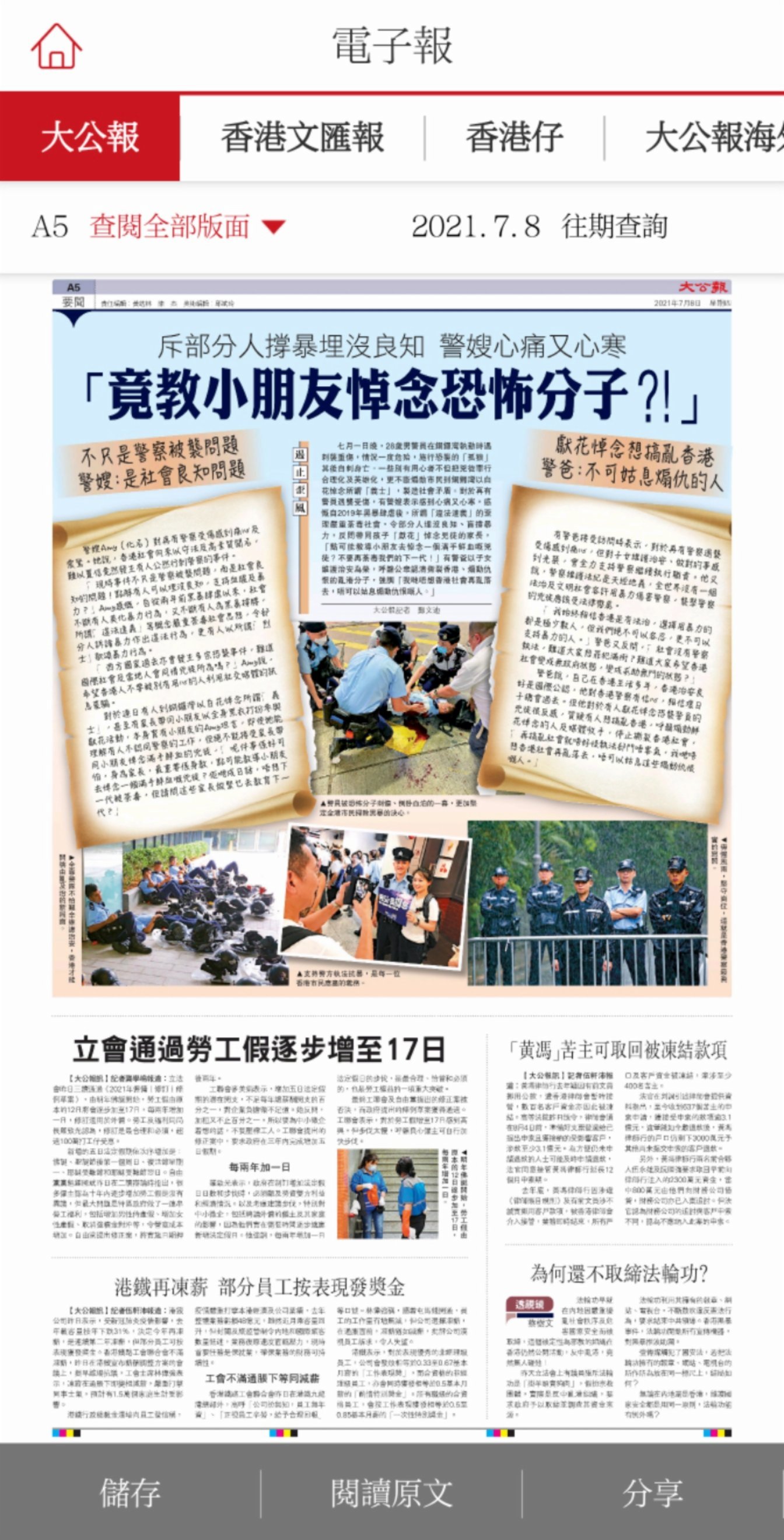 今日(8日),社交媒體平台上流傳着一張所謂「向恐怖分子致敬」的大公報A5版面圖,大公文匯傳媒集團特此嚴正聲明:此圖系偽造假圖,網民請勿轉發。
