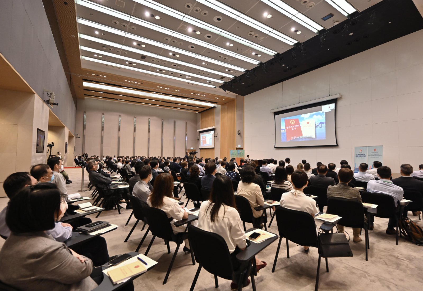 大公文匯全媒體報道:公務員事務局正為首長級及高級公務員舉辦一系列以「認識憲制秩序、維護國家安全」為主題的講座。第一場講座今日(9日)在政府總部舉行,由香港基本法委員會副主任譚惠珠,香港基本法委員會委員、港大法律學院教授陳弘毅主講,共約400名首長級和高級公務員出席。