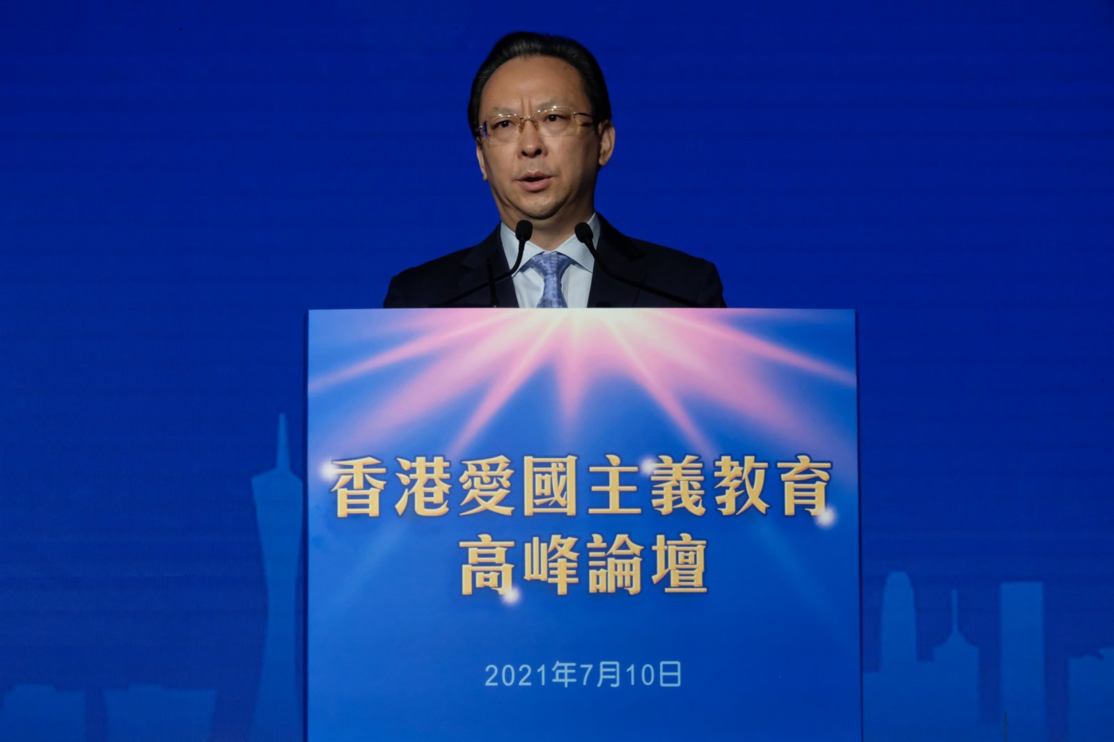 在剛剛過去的7月1日,我們隆重慶祝中國共產黨百年華誕,喜迎香港回歸祖國24周年。今天,我很高興和各位一道,參加「香港爰國主義教育高峰論壇」,和大家一同探討如何讓愛國愛港的光榮傳統薪火相傳。首先,我謹代表中央政府駐港聯絡辦對論壇的舉辦表示熱烈的祝賀!向與會的各界朋友表示誠摯的歡迎!向組織這次論壇的香港教育工作者聯會、香港大公文匯傳媒集團和紫荊雜誌社表示衷心的感謝!