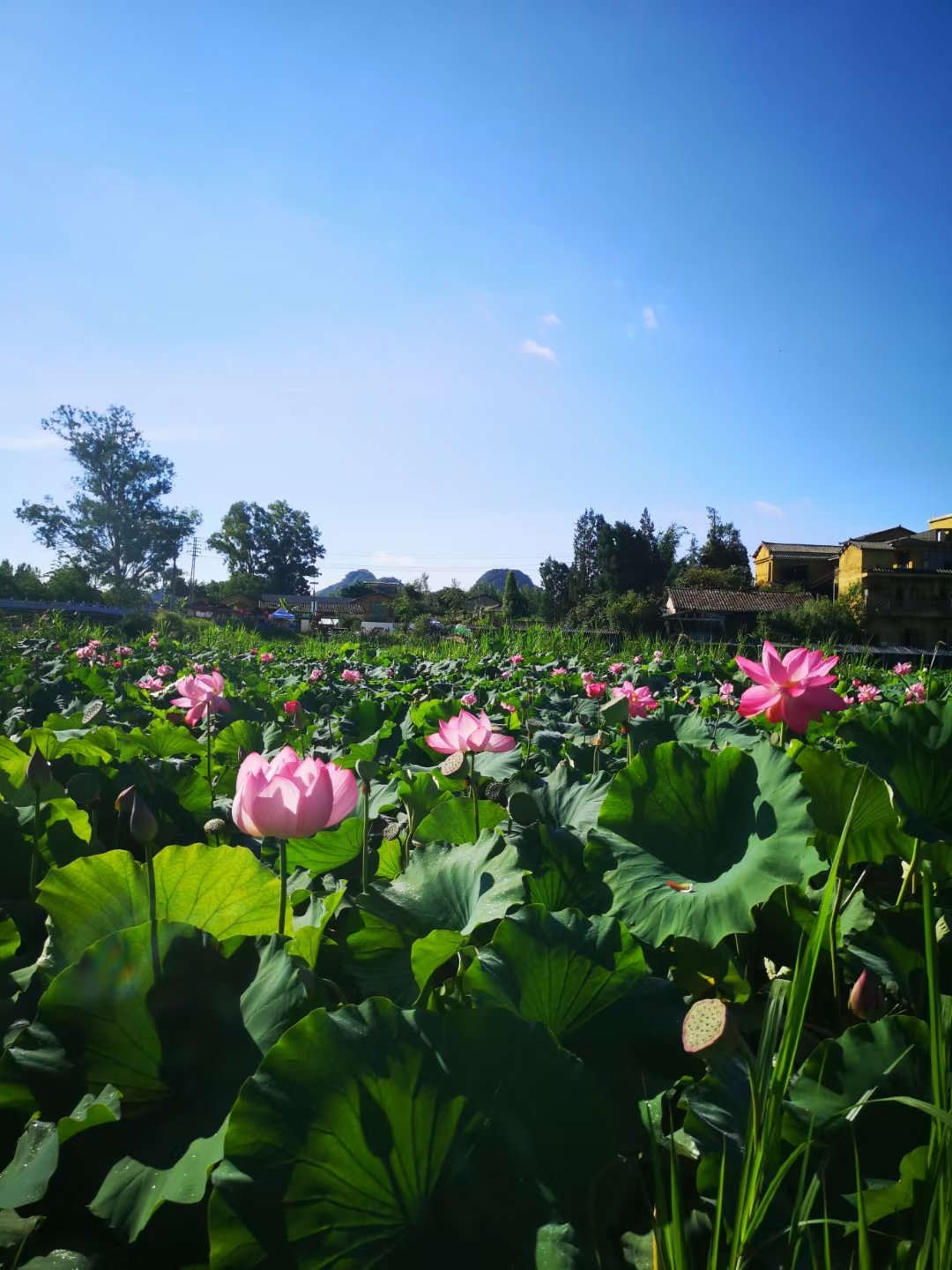 普者黑喀斯特國家濕地公園是雲南唯一的喀斯特濕地公園,生物多樣性豐富,生態系統極具典型性,分布有植物465種、鳥類142種。2萬多畝的水面,僅野生荷花就有上萬畝,擁有包括中國荷花3個系50群和28組的荷花品種近200個。盛夏七月,萬畝荷花競相怒放,一派「紅蓮沉醉白蓮酣」的詩情畫意。