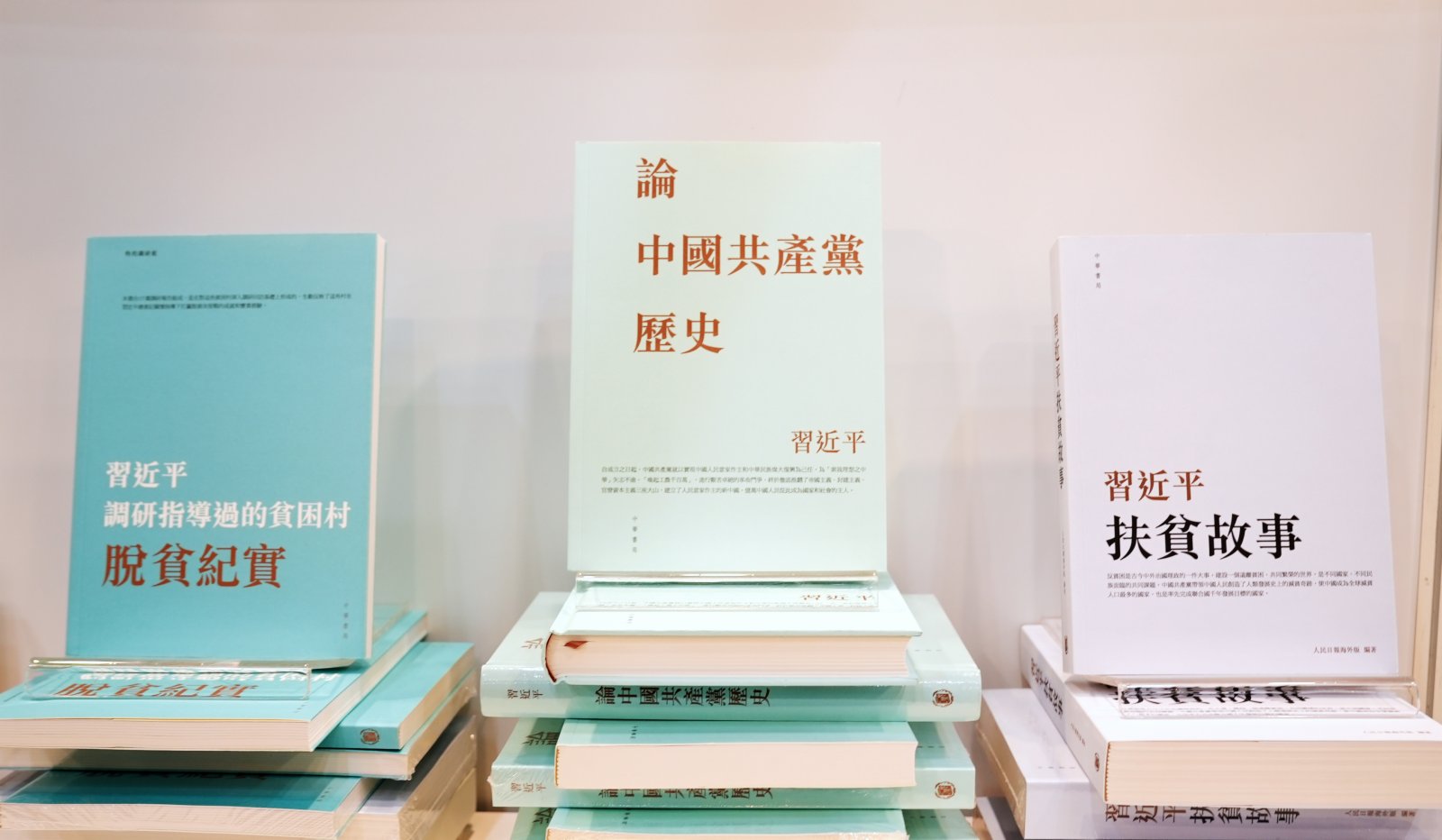 由聯合出版(集團)有限公司屬下中華書局(香港)有限公司出版的習近平《論中國共產黨歷史》《習近平調研指導過的貧困村脫貧紀實》《習近平扶貧故事》三部著作中文繁體版,今日(14日)在香港書展首發,在港澳逾百家實體書店展示及銷售。
