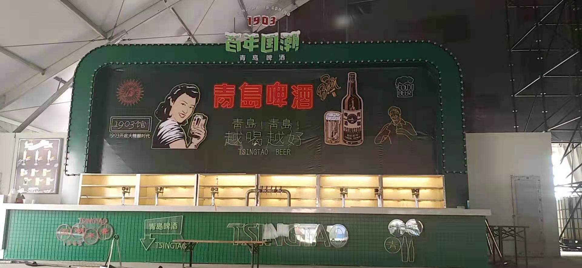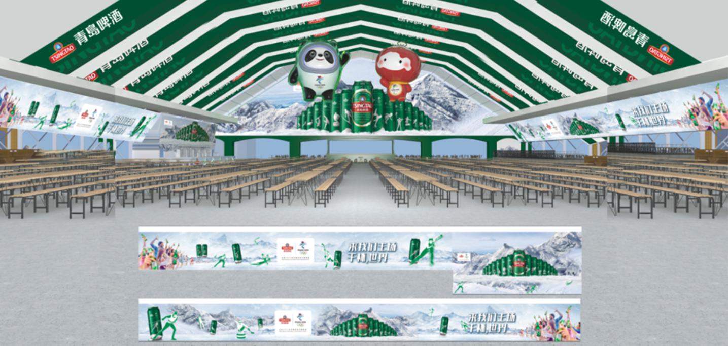 作為2022北京冬季奧運會官方贊助商,青島啤酒首次把冬奧元素搬進了啤酒大篷,15米超長半透明冰感吧台,動感燈光與舞台音樂形成互動,啤酒完美融入冬奧競技項目創意展示,讓打酒也變成視覺享受。