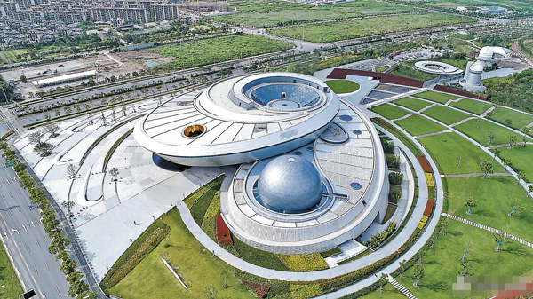 上海天文館佔地面積約5.86萬平方米,建築面積約3.8萬平方米。主建築以優美的螺旋形態模仿天體運行軌道,圓洞天窗、倒轉穹頂和球幕影院構成標誌性的「三體」結構,共同詮釋天體運行規律。館內包含「家園」、「宇宙」、「征程」三大主題展區及「中華問天」、「好奇星球」、「航向火星」等特色展區,並通過AR、VR、生物識別等各類先進的展示手段,構建出了一個沉浸式宇宙空間體驗環境。
