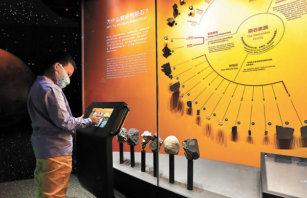 作為最新入駐的亮點展品,月球樣品007號(即月壤樣品)拉近了觀眾與月球的距離。看似平平無奇的「黑沙」,其實是於2020年12月由嫦娥五號探測器採自月球風暴洋,是真正的太空來客。在樣品間內,一份放大展示圖片細說了這份月壤的組成:黃色的橄欖石、棕紅色的輝石,甚至還有很多撞擊融化的玻璃顆粒。據館方工作人員介紹,該份樣品重9毫克,是首次和公眾見面,「從這份樣品中,我們可以看到尖銳的礦物顆粒,也有圓形的形狀,為什麼在月球上會形成這樣的圓形,是值得研究的,所以這樣的樣本既可以有助於對公眾進行科普,對於幫助科學家了解月球的起源和演化歷史也可以起到很重要的作用。」