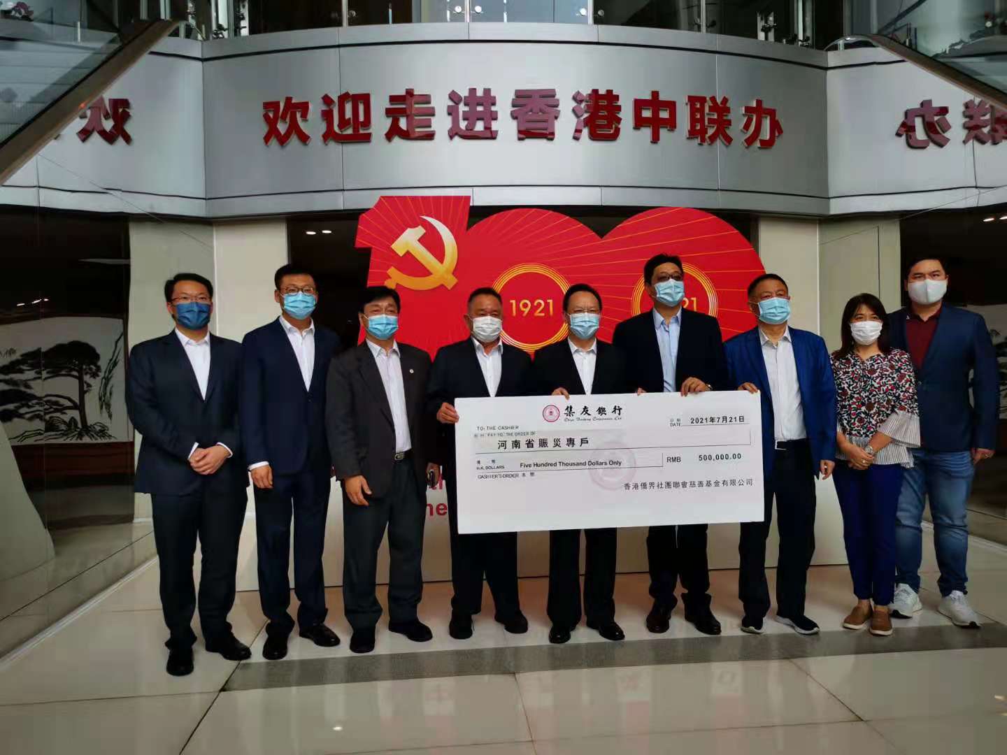 大雨無情人有情,河南遭遇災情的消息傳出后,香港各界紛紛行動,不斷向河南受災地區捐贈救災款,為搶險救災、保障群眾基本生活以及災后重建提供協助。招商局集團通過招商局慈善基金會向河南省慈善總會捐款2000萬元,支持河南水災的緊急救援工作及災後人民恢復生活和生產。周大福宣布已向河南省慈善總會捐出1000萬元,霍英東基金會捐款1000萬元。華潤集團向河南省慈善總會緊急捐款人民幣2000萬元(約2400萬港元)。