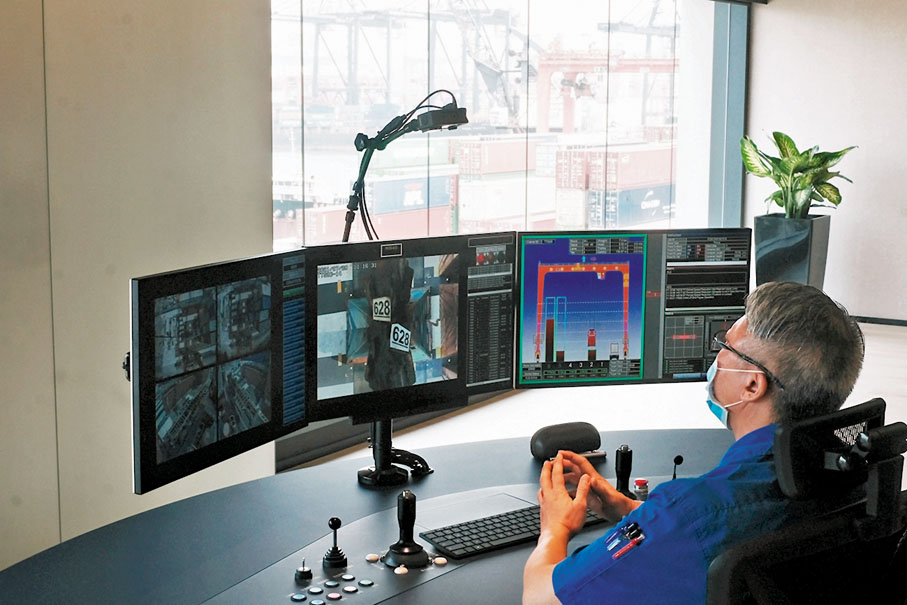 科技滲透百業,本港碼頭亦加快自動化改造進程。中遠 - 國際貨櫃碼頭宣布於葵青港八號碼頭,正式啟用「輪胎式」龍門架吊機遙距操作及貨櫃箱自動堆疊系統,此舉不僅能大大改善吊機操作員的工作環境,亦能將貨櫃堆場的整體工作效率提升至少20%,增強港口的競爭優勢。中遠 - 國際貨櫃碼頭操作總監陳炳耀前日透露,現時共有15台遙距吊機在12個堆場內工作,目標年底實現17台遙距吊機在14個堆場工作。●香港文匯報記者 周曉菁