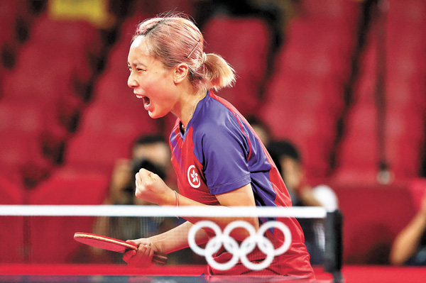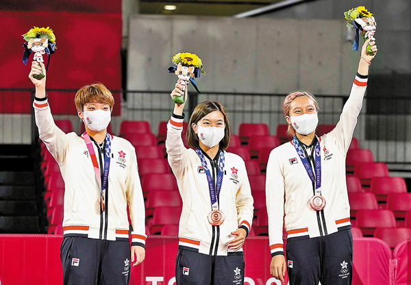香港文匯報訊 (記者 郭正謙 東奧直擊)香港東京奧運代表團再有獎牌落袋!女子乒乓球隊昨在團體賽銅牌戰變陣成功,「奇兵出奇蹟」之下憑蘇慧音取得兩場單打勝仗,以3:1力克德國隊,歷史性奪得團體賽銅牌,創下港女乒征戰奧運最佳成績。同時也是港隊繼李靜/高禮澤於2004年雅典奧運勇奪男雙銀牌後,再次收穫奧運乒乓項目獎牌。此外,劉慕裳昨晚亦在空手道「女子個人形」項目贏多一面銅牌,港隊今屆已累積1金2銀2銅共5面獎牌,數目超越了歷屆總和。只可惜李慧詩在女子凱林賽大熱倒灶只得第8名,唯有收拾心情全力準備今日展開的爭先賽。