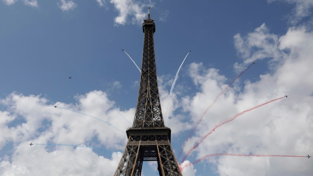 其後巴黎發放超過8分鐘片段,管弦樂團奏起法國國歌,並有樂團成員在法國景點及地標,包括巴黎聖母院、羅浮宮及塞納河畔等地方演奏,展現巴黎的面貌,在國際太空站的法國太空人員亦表演色士風,而片段中的艾菲爾鐵塔,亦展示印有巴黎奧運會會徽的巨型旗幟。大批市民去到艾菲爾鐵塔一帶聚集,法國總統馬克龍與部分民眾在鐵塔上說出「更快、更高、更強及更團結」的奧運格言。八架戰機飛越巴黎上空,噴出法國國旗的藍白紅三色。