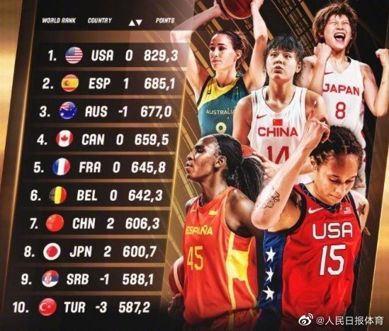 近日,國際籃聯公布了女籃國家隊最新世界排名:美國女籃、西班牙女籃和澳大利亞女籃分列前三位,中國女籃排在第七位。