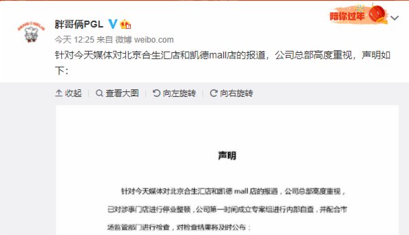 8月23日,兩家由「胖哥倆」直接管理的合營門店被爆出大量使用過期食材。隨後「胖哥倆」在其微博賬號上發表聲明,表示公司將成立專案組進行內部自查,並配合市場監管部門檢查。