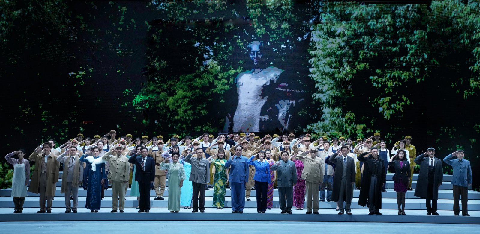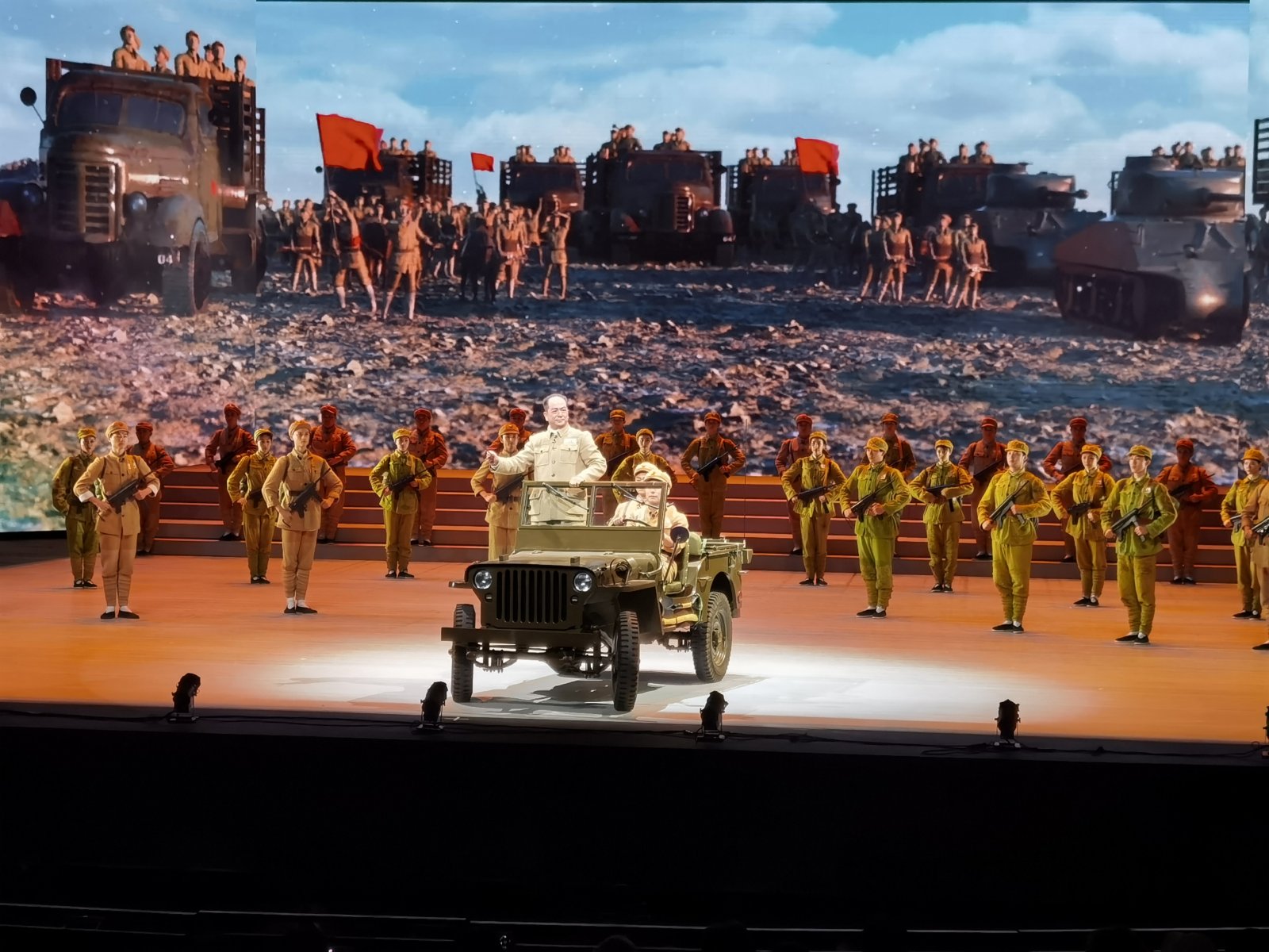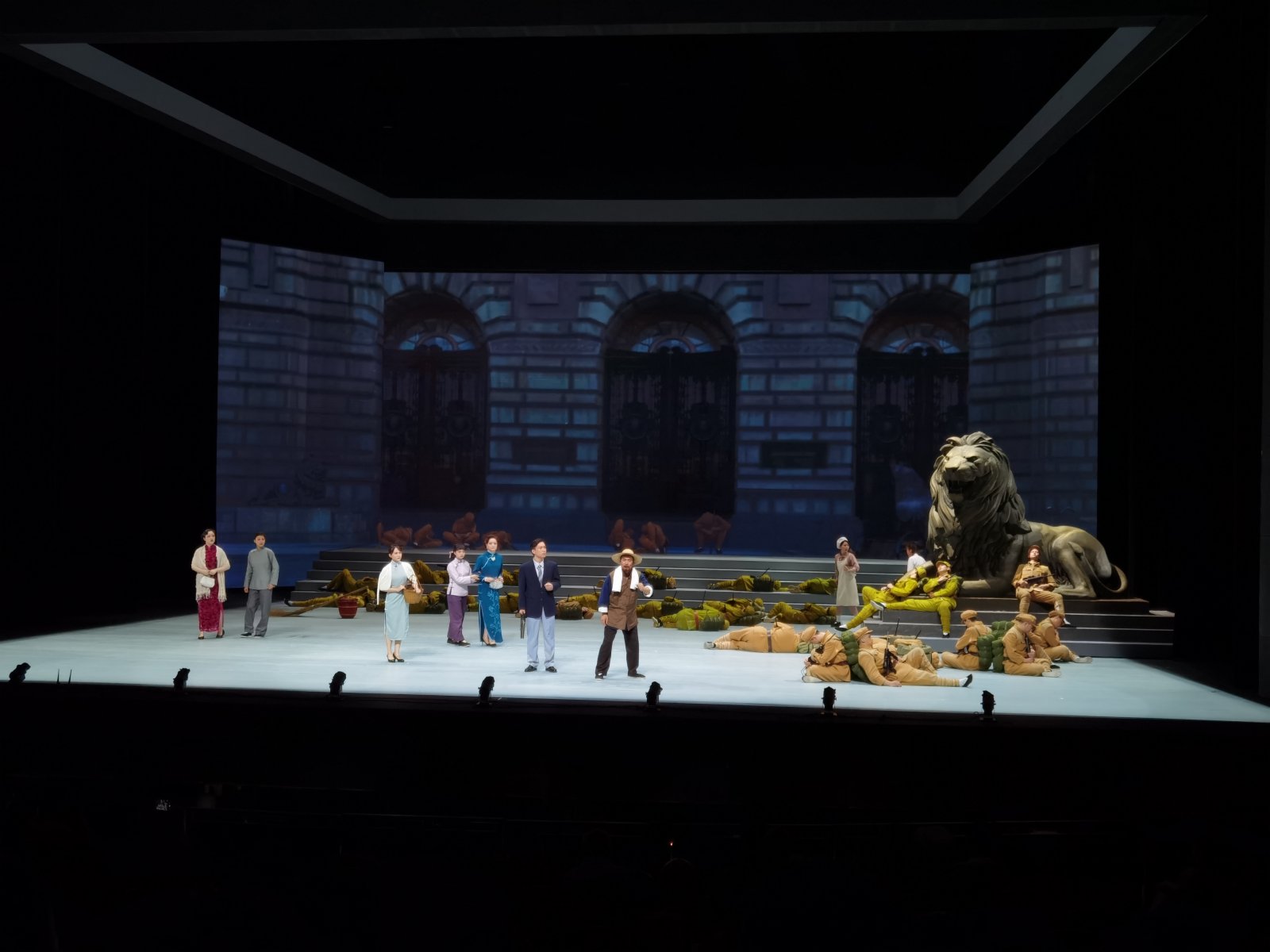滬劇作為上海的地方劇種,近年來也在「大」字上不斷探索。在本劇中,首次看到了吉普車開上舞台的戰爭場景,亦有背景LED屏所呈現的視幻空間,將南京路、外灘、銀行博物館、外白渡橋、交響音樂廳等等劇中重要場景一一呈現。