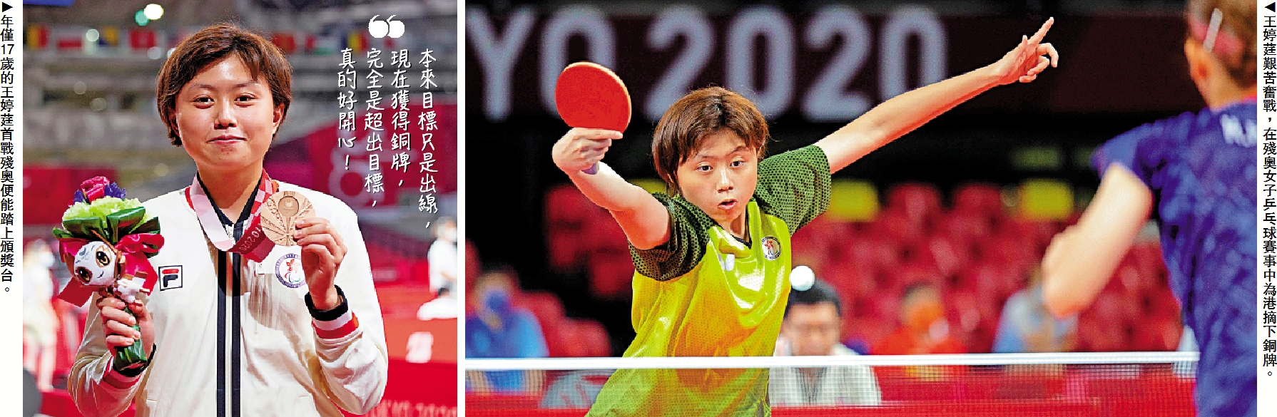 (大公報記者 張銳)「本來目標是只是出線,現在獲得銅牌,完全是超出目標!」昨日在東京殘奧會上,年僅17歲、世界排名第四的香港乒乓球選手王婷莛為港爭光,奪得香港今屆賽事首枚獎牌,在電視前觀看直播的廣大市民又一次歡呼!
