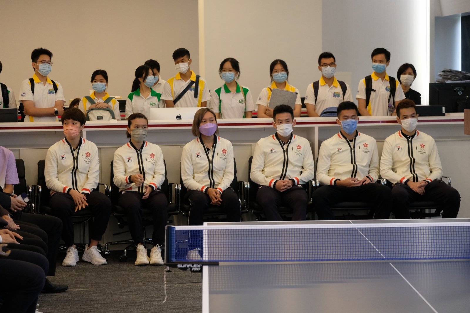 (大公文匯全媒體記者 徐小惠)東京奧運港隊多位代表今日(30日)到訪大公文匯傳媒集團並舉辦交流會,男乒隊球員黃鎮廷、林兆恆、何鈞傑下午在現場接受大公文匯全媒體記者專訪。對於這次參觀大文集團,三人都感到很開心,黃鎮廷對於參觀報史館印象尤其深刻,「看到(大公報)從創立至今,有上百年歷史,覺得很難得。」何鈞傑和林兆恆則非常開心能與學生、市民一起打波互動,何鈞傑說希望可以通過這些互動,幫助香港學生接觸乒乓球項目,「希望他們可以鐘意這個項目,提高我們香港隊的後備力量,將來有機會可以去轉到職業運動員為港爭光。」