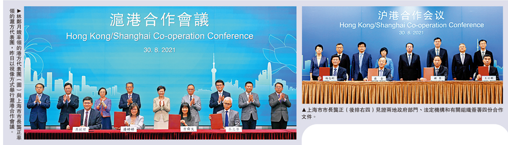 林鄭月娥與龔正於會上簽署《滬港合作會議第五次會議合作備忘錄》,而兩地政府部門、法定機構和有關組織亦簽署四份合作文件,包括《開啟「十四五」雙循環商機經貿合作備忘錄》、《滬港創新及科技合作備忘錄》、《香港醫院管理局與上海申康醫院發展中心2021-2026年合作協議書》,以及《上海博物館與香港故宮文化博物館合作意向書》。
