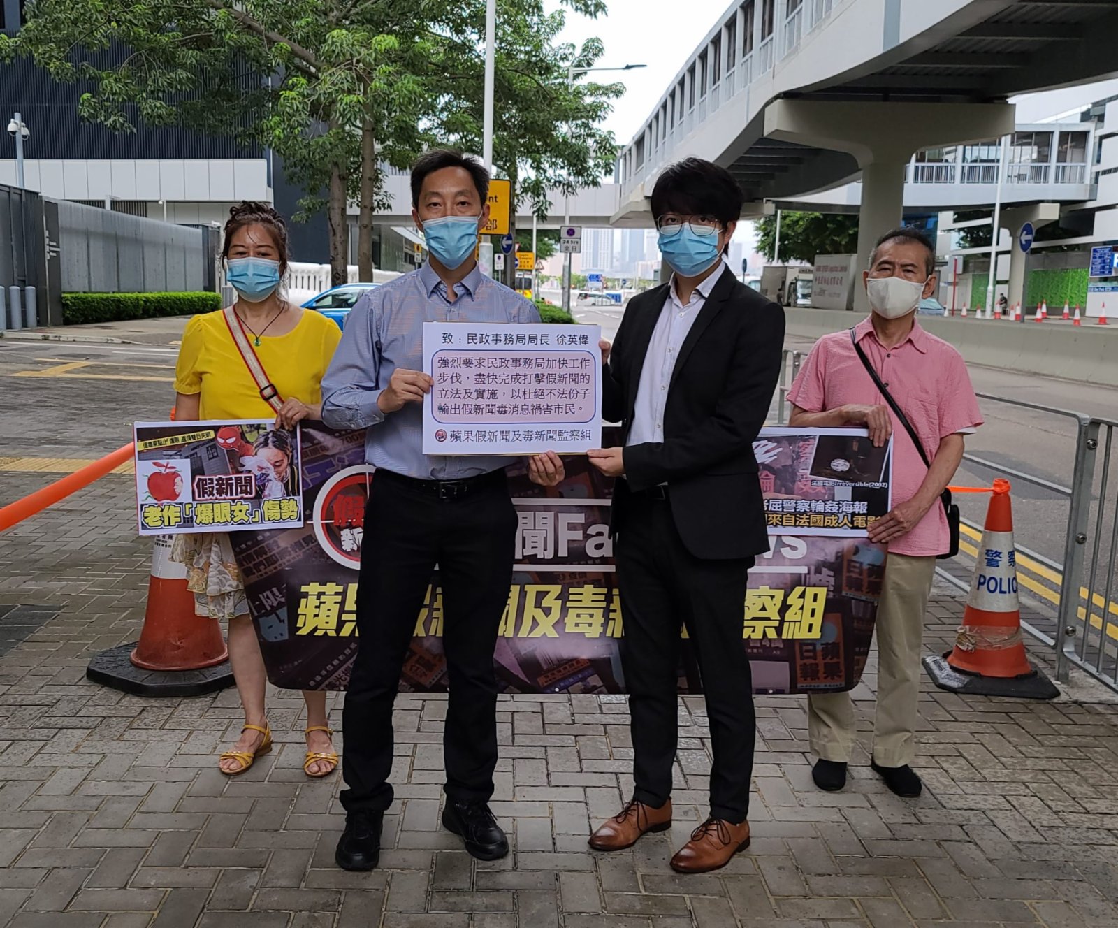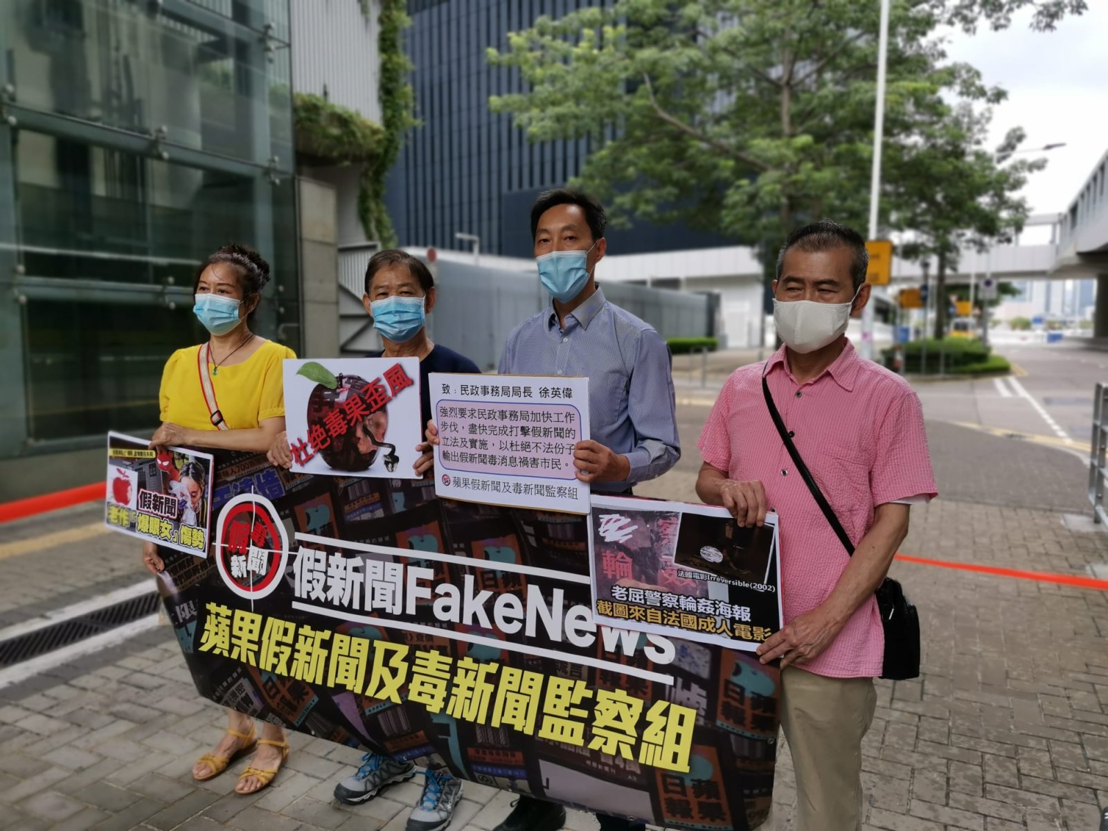 大公文匯全媒體報道:「毒果」停刊、壹傳媒停運,但危害國家安全者仍不斷利用媒體、文化藝術及刊物,繼續散播「港獨」和亂港歪風。市民團體「蘋果假新聞及毒新聞監察組」今日(31日)到政府總部集會請願,促請民政事務局及保安局加快工作步伐,盡快完成打擊假新聞的立法及實施,以杜絕不法份子輸出「假新聞」「毒消息」禍害市民。