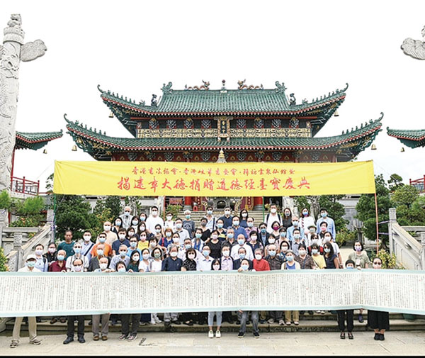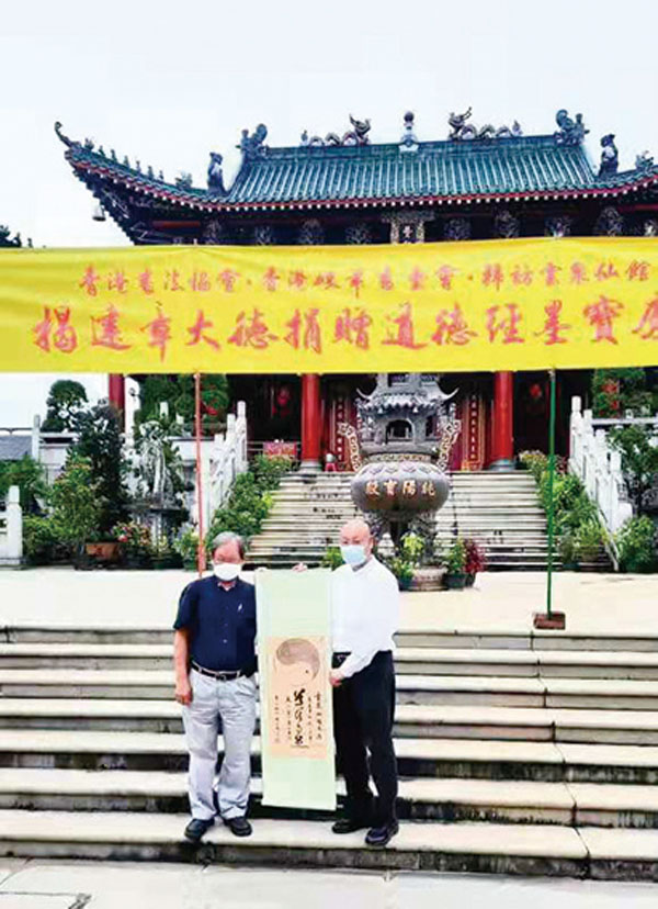 「揭建章大德捐贈《道德經》墨寶慶典」日前在雲泉仙館盛大舉行。是次由香港書法協會及香港硬筆書藝會統籌並邀請了逾80位善信參與活動,特邀嘉賓包括前食物及衞生局局長高永文醫生伉儷及香港書法界多位領導。