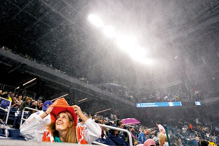 颶風艾達「風尾」帶來驚人雨量,讓美國網球公開賽即便在有屋頂的岩士唐球場進行,仍因漏雨而暫停男單次輪賽事,成為美網史上中止比賽最離奇的原因之一。
