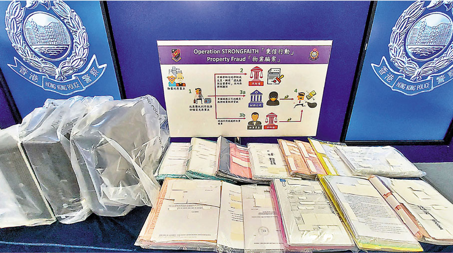 警方瓦解一個以律師團隊為骨幹的侵吞物業詐騙集團,揭發犯罪團夥串通律師、法律行政文員、地產經紀及財務公司職員,針對有接近半世紀或以上樓齡及長年空置無人打理的物業,利用傀儡人物使用虛假身份,經律師樓取得「遺失樓契宣誓聲明」,繼而變身為業主,由去年5月至今年4月共竊取8個物業的業權,並將物業作抵押向財務公司貸款,以及轉售給新買家,涉款金額達6,270萬元。其中一個假業主開價千萬向市建局洽談收購時,被揭發真業主已離世22年,警方遂展開調查並採取「秉信」行動,前日以串謀詐騙拘捕包括大律師蕭震然在內的12人。●香港文匯報記者 蕭景源