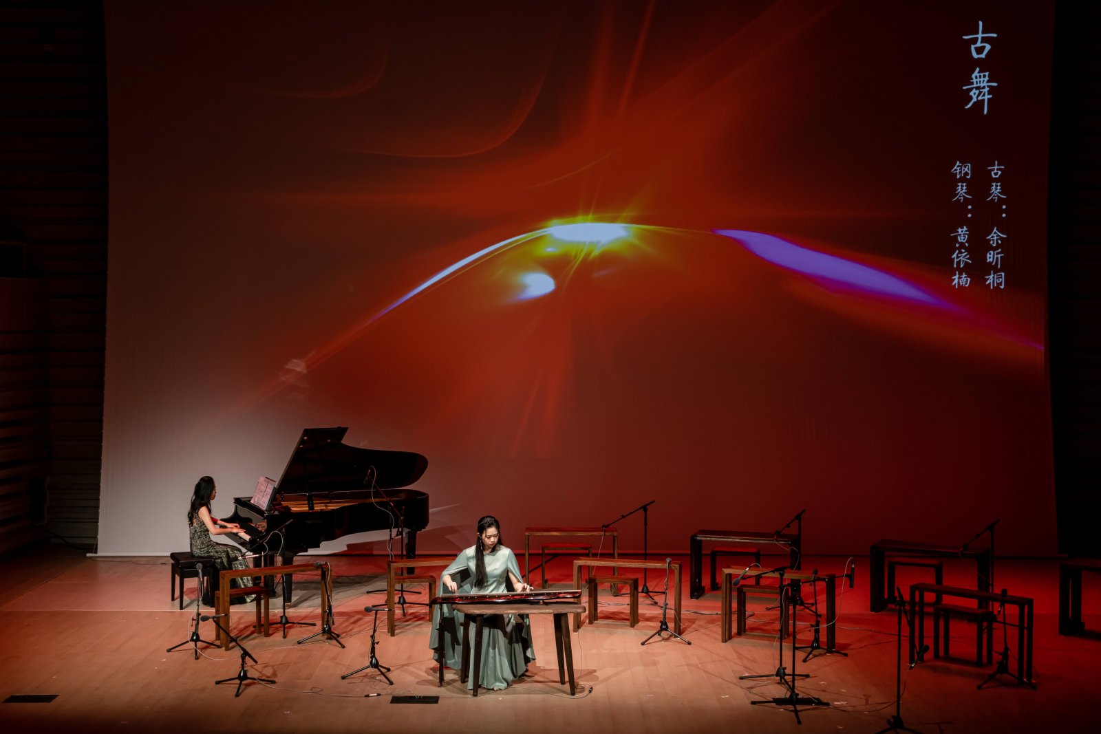 由香港籍學子余昕桐與香港籍鋼琴演奏家黃依楠帶來的古琴鋼琴二重奏《古舞》,贏得現場觀眾的陣陣掌聲。《古舞》是作曲家王建民教授由參觀雲岡石窟獲得創作靈感,意在重現古代宮廷樂舞的場景和盛況。《古舞》的創作採用極具技巧難度的舞蹈性節奏,對演奏者的表現技巧和配合度提出了更高要求。兩位表演者注重調性的巧妙融合與轉換,演奏相得益彰,掀起了本場音樂會的一個小高潮。