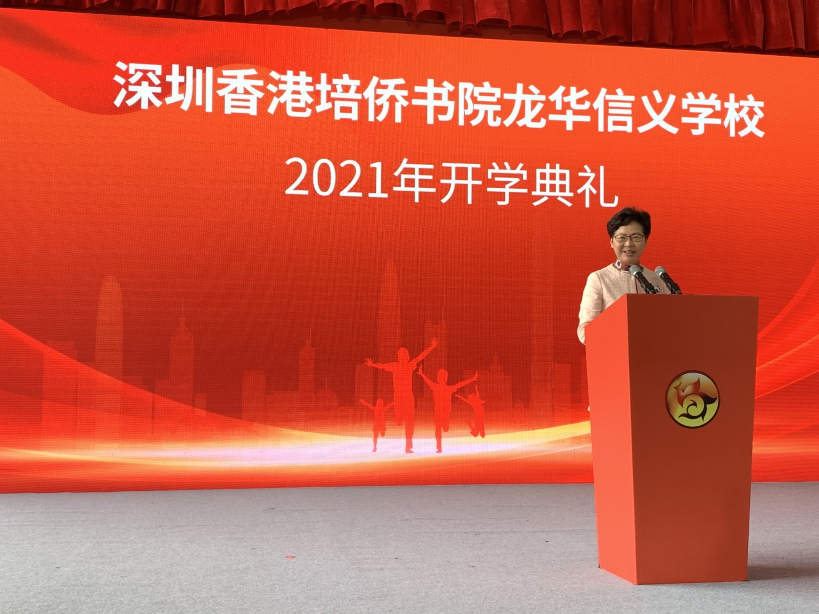 (香港文匯網記者 毛麗娟)香港特區行政長官林鄭月娥9月6日下午出席深圳香港培僑書院龍華信義學校開學典禮並致辭。她表示,培僑教育機構在香港辦學已經超過70年,學校一直秉持為中國的富強培養人才的教育精神,承擔新一代教育的使命,現在更先行先試,將其辦學理念及高質教育拓展至大灣區內地城市,服務在內地的港人子女,為社會、為國家培養新生代,為中國走向世界作出貢獻。據稱,該校辦學首年的收生已達1200人,林鄭月娥希望培僑書院龍華信義學校的每一位同學,都能為國家的發展盡一份力。