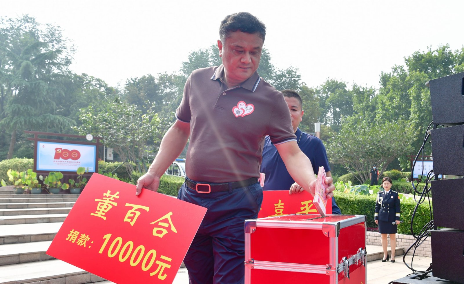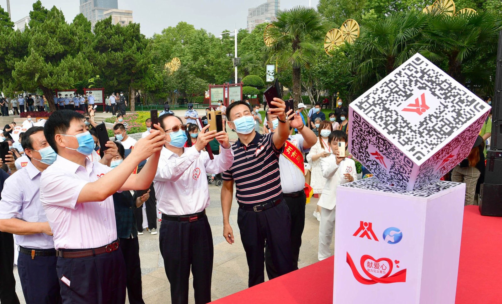 活動現場氣氛熱烈,現場民眾紛紛慷慨解囊,掃碼捐獻愛心。河南省見義勇為基金會副理事長鄭實軍、秘書長鄭獻春,鄭州市見義勇為協會會長孫金獻,鄭州市公安局黨委副書記李珂分別向鄭州銀行股份有限公司、鄭州地產集團有限公司、鄭州發展投資集團有限公司等10家愛心企業,劉如超、郭華鋒、鄭義等14名愛心人士代表頒授《見義勇為愛心企業(人士)》牌匾、證書。