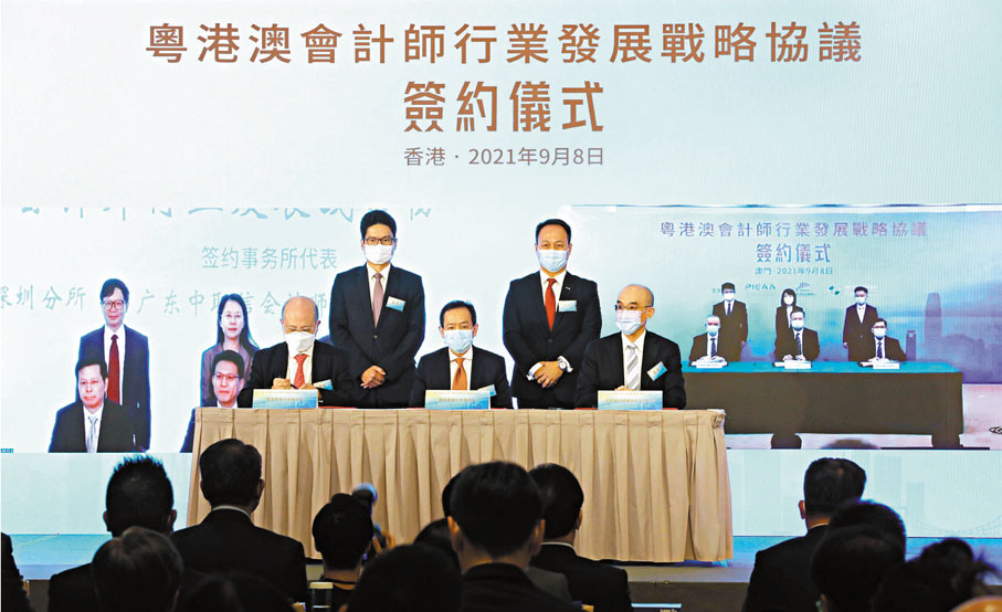 近期中央積極支持港澳更好地融入國家發展大局,除了安排宣講團來港介紹《十四五規劃綱要》外,還出台《全面深化前海深港現代服務業合作區改革開放方案》、《橫琴粵澳深度合作區建設總體方案》等措施,昨就促進廣東與港澳的會計行業合作發展,再有新舉措。粵港澳會計師行業發展戰略協議昨正式簽約,以推動粵港澳會計師行業高質量發展、提升三地會計服務市場一體化水平,為大灣區經濟發展提供更高質量的專業服務。 ●香港文匯報記者 蔡競文