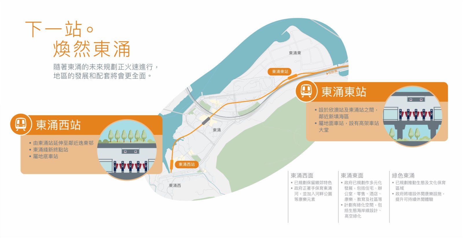 據了解,東涌綫延綫項目主要分為東、西兩段。西延綫全長約1.3公里,將現時的東涌站伸延至新建的「東涌西站」,該站會是地底車站,為未來東涌綫新終點站;新建的「東涌東站」位於現有東涌站與欣澳站之間填海區,屬地面車站。