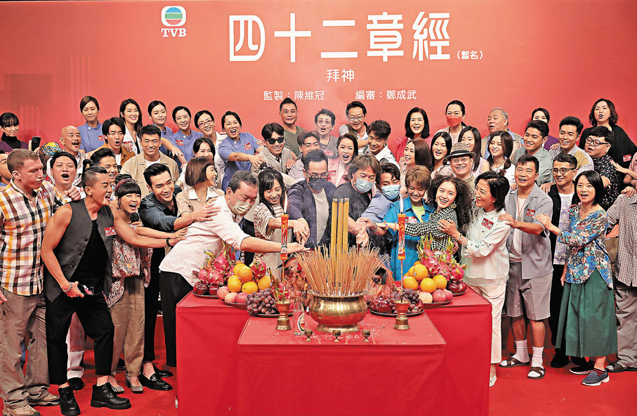 香港文匯報訊(記者 阿祖、梁靜儀)無綫新劇《四十二章經》昨日舉行拜神儀式,陳豪、龔嘉欣、譚凱琪、周嘉洛、江嘉敏、鄺潔楹及鄒兆霆等演員出席。陳豪近日當選TVB最Nice藝人,他笑言做了好多工夫才得獎,龔嘉欣就大爆他經常請人飲咖啡,嘉欣又透露在新劇中要斬豬肉,但她自言很快已上手。至於早前遇襲的鄒兆霆亦有亮相拜神儀式,但他對遇襲事件玩失憶。