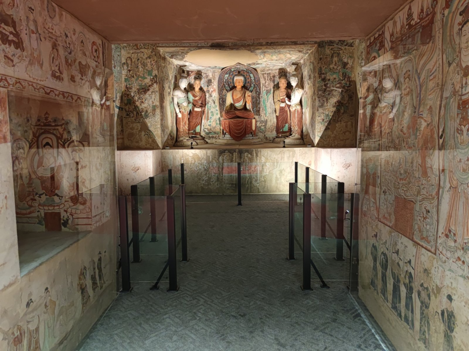 在午門西馬道下臨時展廳還同時展出敦煌莫高窟第285窟、第220窟和第320窟三個複製洞窟。讓觀眾近距離體驗作為中華文明千年華彩匯聚的兩大代表、文化遺產保護研究及利用的兩大基地——敦煌石窟與故宮的獨特魅力。