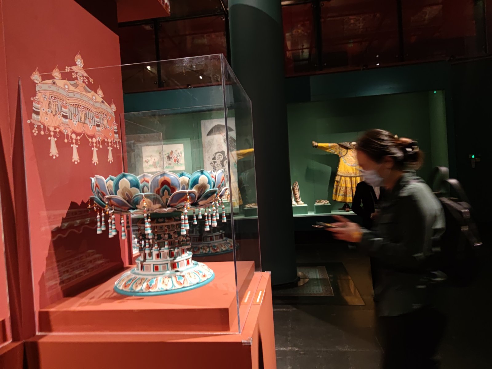 據介紹,今次展覽分為「絲路重華」「萬象人間」「保護傳承」三個單元,展出來自絲綢之路甘肅段的文物及故宮博物院院藏文物共188件。展品還包括敦煌壁畫臨本35件,複製彩塑6身,高保真數字化壁畫復製品70餘幅,還有仿製華蓋、佛塔等輔助展品20餘件。